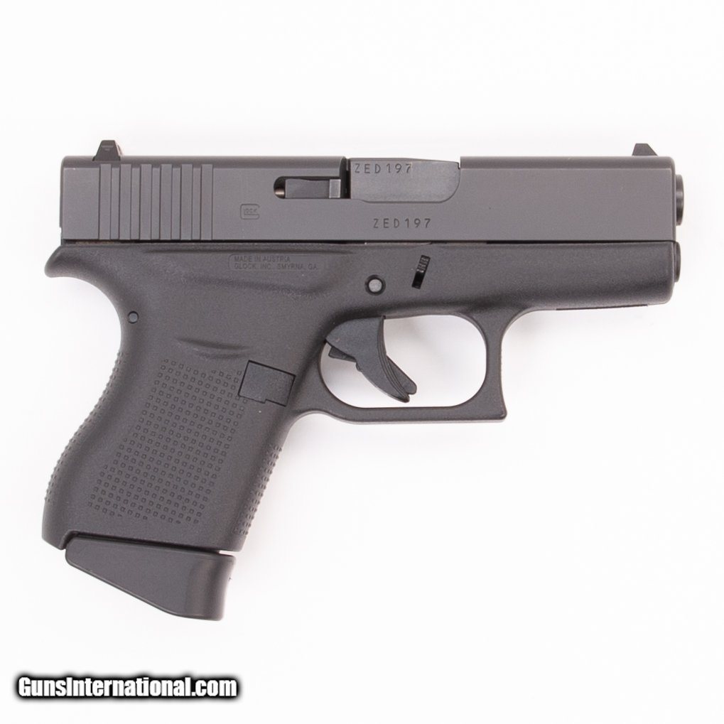 Description: Guns Listing ID: 470788 The already legendary G43 is a GLOCK Single stack, 9 mm Luger caliber pistol. It is ultra-concealable, accurate and a fantastic tool for all shooters regardless of one’s hand size. The grip has a built-in beaver tail design which allows the shooter to acquire a high and tight grip. The aggressive texture of the grip surface allows for comfortable and reliable operation of the pistol. The large magazine catch makes quick work of removing the six round magazine. Engineered based on the same superlative standards that GLOCK is famous for, the tiny G43 tolerates the same torture tests all its bigger brothers in the GLOCK pistol family withstand. These G43‚‚s were picked up in a law-enforcement trade-in. 2-6 round magazines included with each. Due to this being an LE Trade-in there are a wide variety of installed sights. What you see in the pictures may vary from what you receive. Any firearm that can stand up to daily wear and tear on the force is a trustworthy addition to your collection, whether you plan to use it for personal protection or as a range gun. Law enforcement trade-ins are usually fired less than other used firearms. They have wear from daily duty use, but most LEO only shoot their firearms when qualifying at the range. So, despite mild cosmetic damage from holsters and handling, the barrels and internal components are usually in great condition. Our police trade-ins are a unique opportunity to own a dependable, high-quality firearm at a great price! Law enforcement trade-in‚‚s vary in condition. Some will have armory marks, others retain their police department crests, and almost all of them show signs of use (holster wear, nicks, dings, etc.). The condition will not be the same from one to the next, but they all fall within the same category of condition SOLD Manufacturer: GLOCK Model: G43 (LE TRADE-IN) Caliber Info: 9MM LUGER (9x19 PARA) Condition: Used - Certified Barrels: 3.41" BARREL Action: STRIKER FIRED Finish: black Weight: 1.12 LBS |