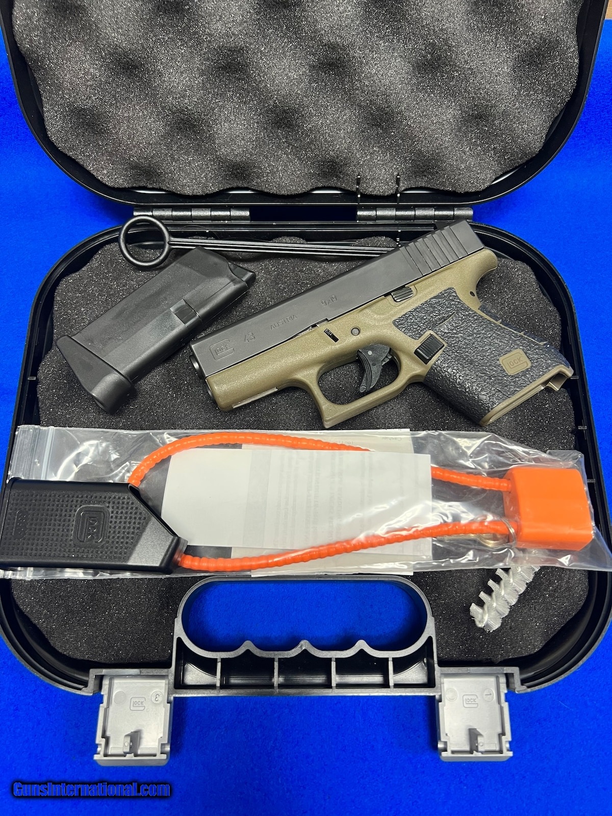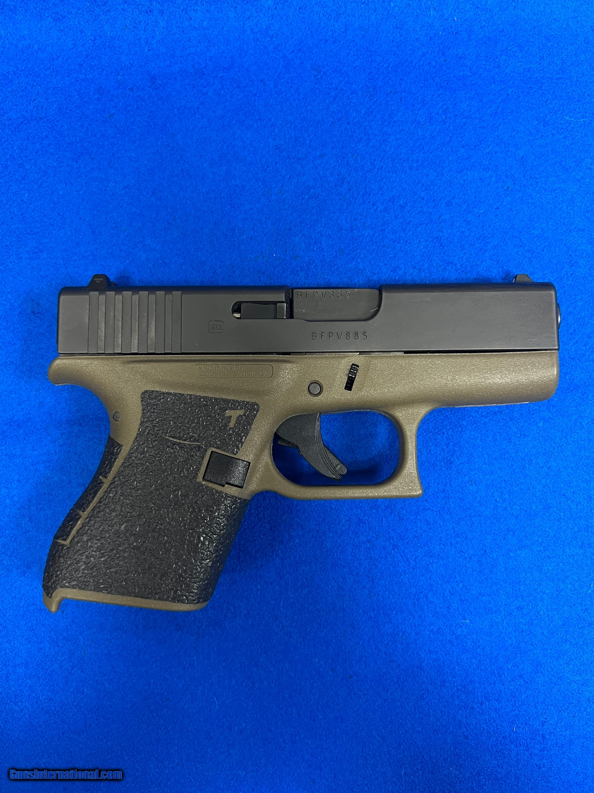 Description: Guns Listing ID: 534990 Here is a hardly used factory OD green glock 43. It comes with the original case, (1) magazine and a nice grip tape on there. The OD versions were a limited production color and they have become a sort of collectors gun. It would make a great conceal gun or something cool to put away in a safe. SOLD Manufacturer: GLOCK Model: G43 OD Green Caliber Info: 9MM LUGER (9X19 PARA) Condition: Used - Non-Certified Barrels: 34 BARREL Finish: BLACK AND GREEN |