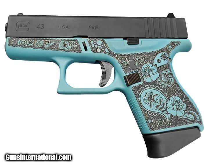 Glock G43 Tiffany Blue Custom Engraved 9mm 3.4" 6 Rds GLUI4350201GRFP