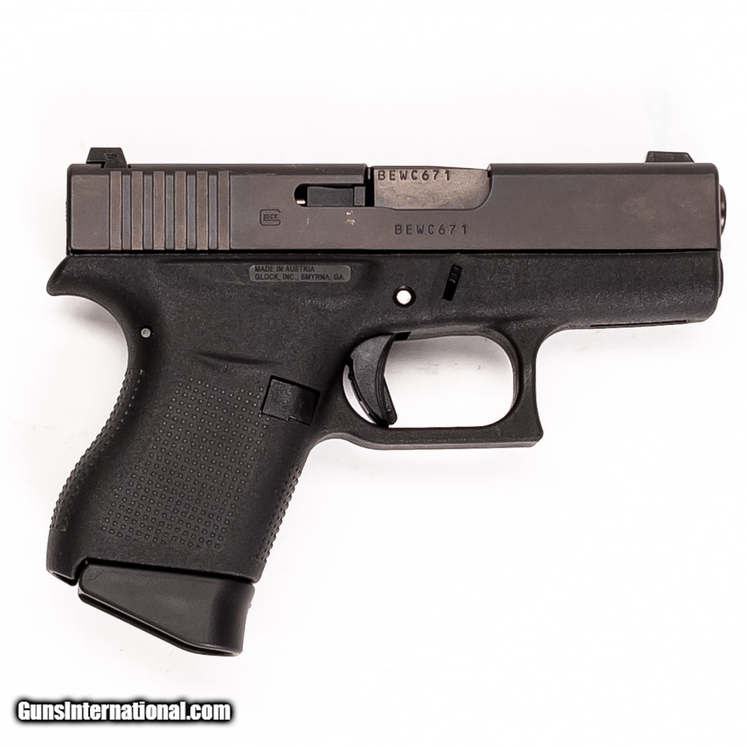 Description: Guns Listing ID: 303784 The Glock 43 is an award-winning single stack 9mm handgun known for its ease of concealment, accuracy, and reliability. This pistol is an excellent option for daily carry or a deeply concealed backup for law enforcement agents, defense contractors, and security guards. This Glock 43 is in very good condition and comes with the original case, manual, and three 6-round magazines. SOLD Manufacturer: GLOCK Model: G43 Caliber Info: 9MM LUGER (9X19 PARA) Condition: Used - Certified Barrels: 3.3 BARREL Finish: BLACK |