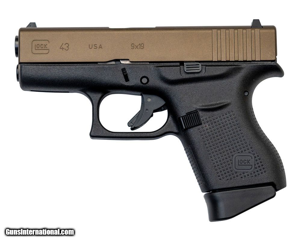 Description: Guns Listing ID: 483588 The already legendary Glock G43 is a Glock single stack, 9mm pistol. It is ultra-concealable, accurate and a fantastic tool for all shooters regardless of one‚‚s hand size. The grip has a built-in beaver tail design which allows the shooter to acquire a high and tight grip. The aggressive texture of the grip surface allows for comfortable and reliable operation of the pistol. The large magazine catch makes quick work of removing the six round magazine. Engineered based on the same superlative standards that Glock is famous for, the tiny G43 tolerates the same torture tests all its bigger brothers in the Glock pistol family withstand SOLD Manufacturer: GLOCK Model: G43 Caliber Info: 9MM LUGER (9X19 PARA) Condition: new Barrels: 3.39" barrel Finish: BURNT BRONZE/BLACK |