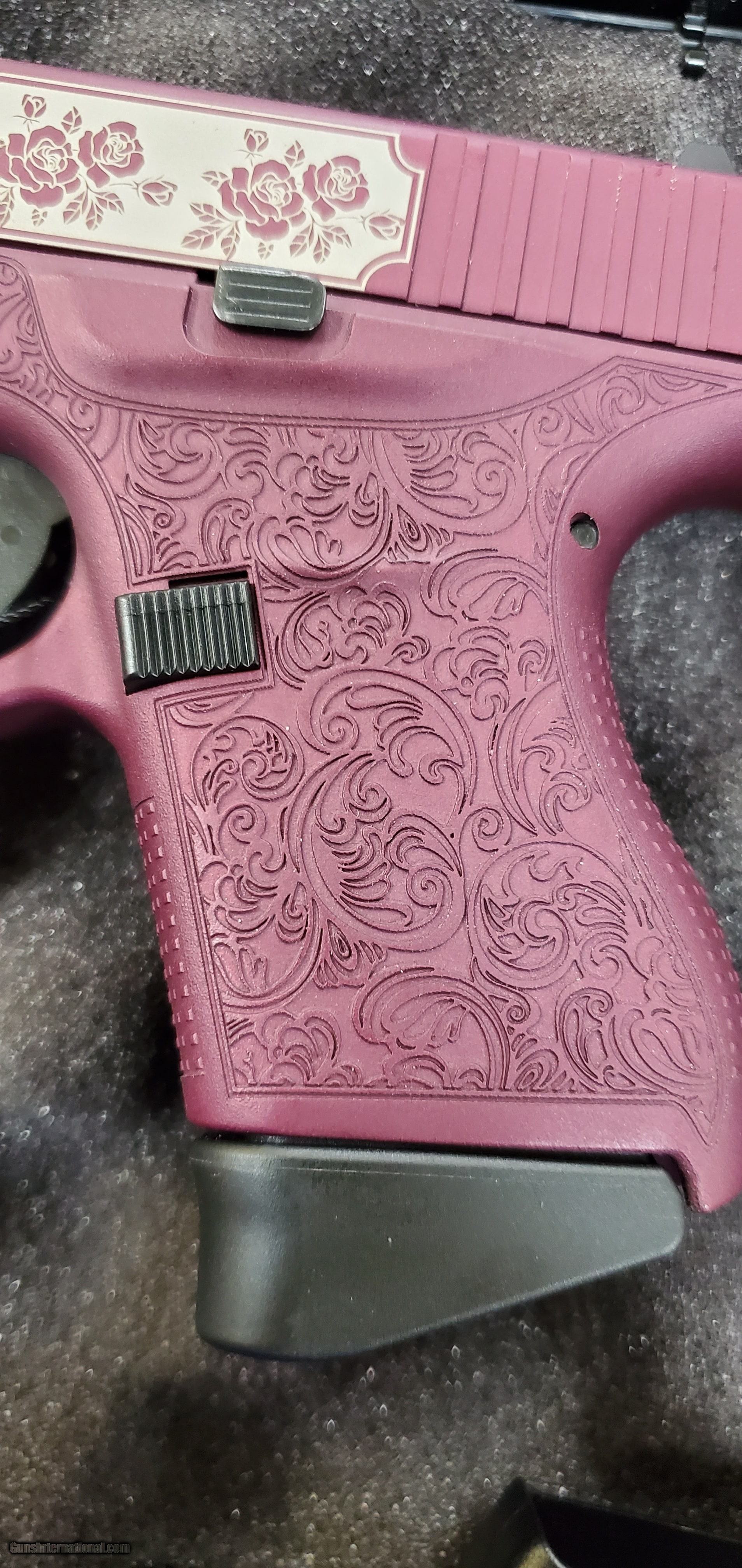 Description: Guns Listing ID: 508286 Black Cherry \"Roses vs. Paisley\" Comes with 2 mags and original case. SOLD Manufacturer: GLOCK Model: G43 Caliber Info: 9 MM Condition: Used - Non-Certified Barrels: 3.39" barrel Finish: BLACK CHERRY |