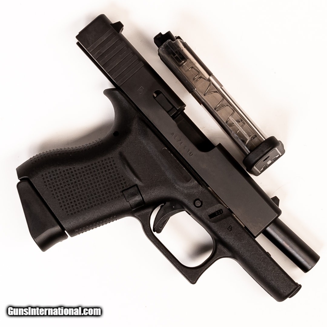 Description: Guns Listing ID: 534232 This compact Glock 43 makes a great home-defense and concealed carry sidearm thanks to its comfortable ergonomics, aggressive texturing, and unquestionable reliability. 2-6 round magazines, the original case, and a manual are included. SOLD Manufacturer: GLOCK Model: G43 Caliber Info: 9MM LUGER (9X19 PARA) Condition: Used - Certified Barrels: 3.4 barrel Finish: BLACK |