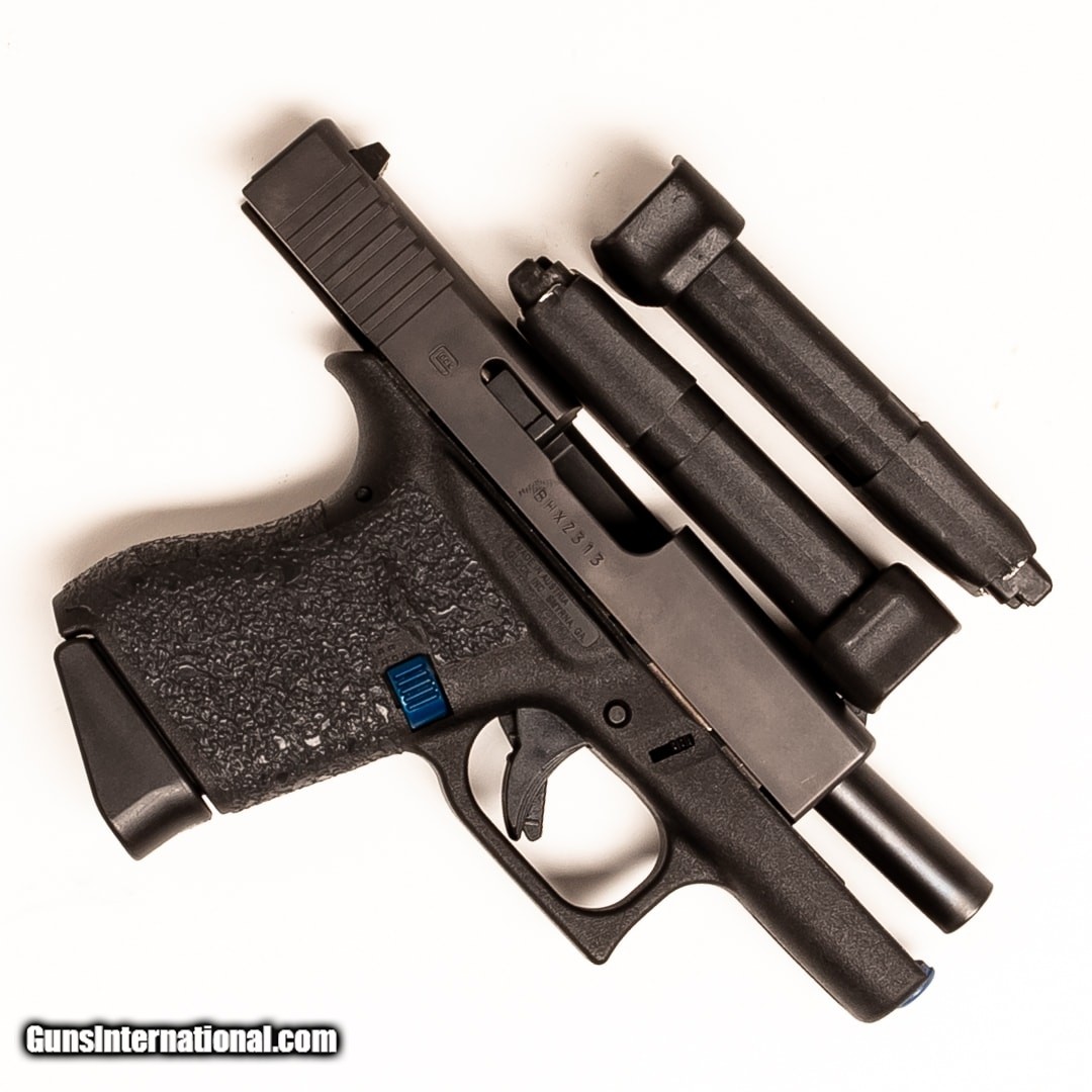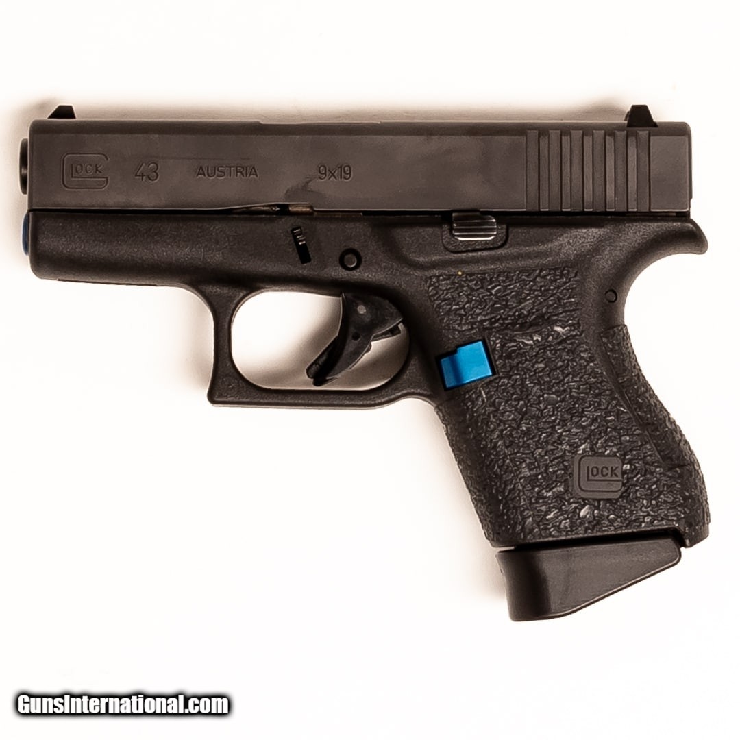 Description: Guns Listing ID: 591092 The Glock 43 is an award-winning single stack handgun known for its ease of concealment, accuracy, and reliability. It‚‚s an excellent option for daily carry or a deeply concealed backup for law enforcement agents, defense contractors, and security guards. This G43 has a Talon grip wrap and a weighted recoil spring from the Glock Shop. Three 6-round magazines are included SOLD Manufacturer: GLOCK Model: G43 Caliber Info: 9MM LUGER (9X19 PARA) Condition: Used - Certified Barrels: 3.4 barrel Finish: BLACK |