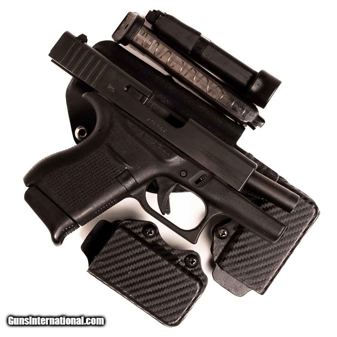 Description: Guns Listing ID: 669410 The Glock 43 is an award-winning single-stack handgun known for its ease of concealment, accuracy, and reliability. It‚‚s an excellent option for daily carry or a deeply concealed backup for law enforcement agents, defense contractors, and security guards. This G43 includes the original case, two 6-round magazines, one 8-round magazine, a right-handed IWB Badger holster, and two mag holders. Get the best bang for your buck when you get a Certified Used Firearm . When you see the Certified Used stamp on any of our firearms, you can be confident that you’re getting exactly what you want – a gun only in very good to excellent condition and held to the highest quality standard. All Certified Used Guns come with a ‘no questions asked’ return policy . PLUS, ALL CERTIFIED USED GUNS SHIP FREE SOLD Manufacturer: GLOCK Model: G43 Caliber Info: 9MM LUGER (9X19 PARA) Condition: Used - Certified Barrels: 3.4 BARREL Finish: BLACK |