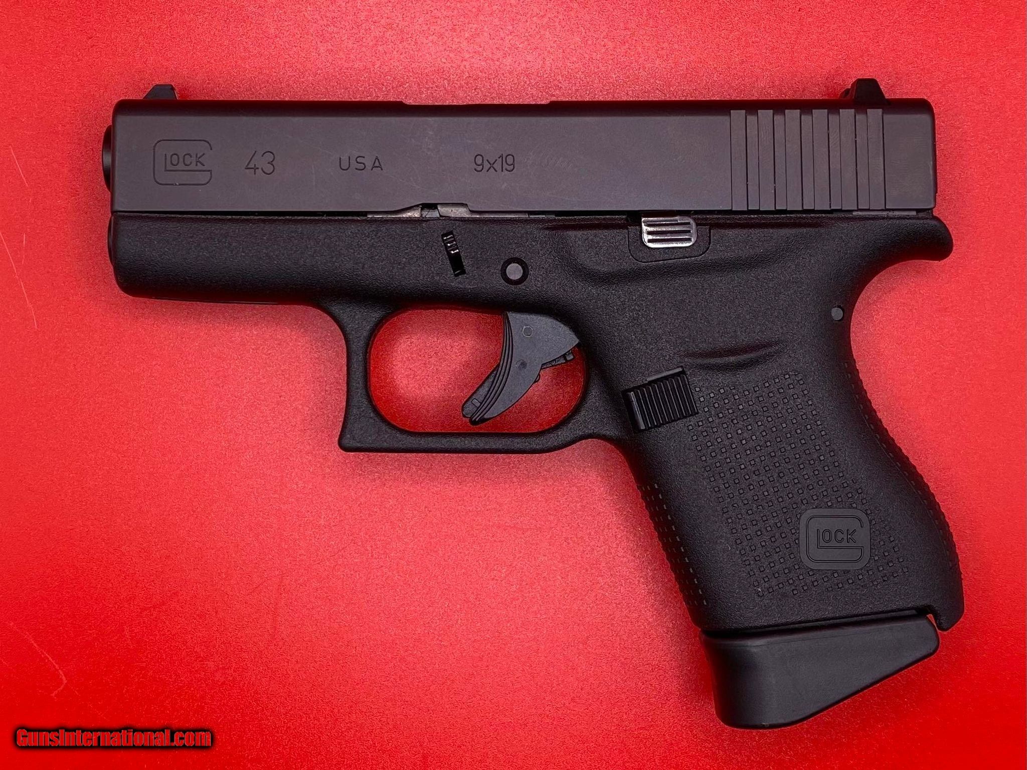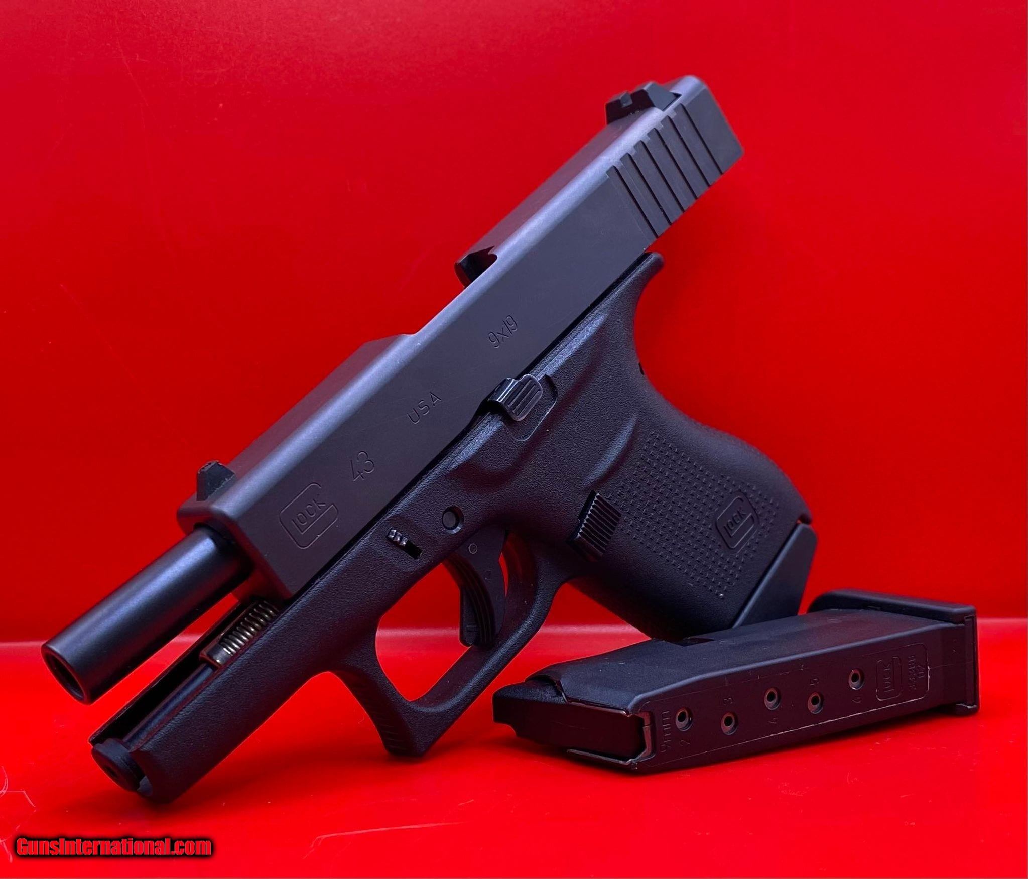 Description: Guns Listing ID: 858243 The G43 is Glock‚‚s subcompact, slimline, single stack, 9mm pistol. The G43 is the answer to your everyday concealed carry needs. It is ultra-concealable, accurate, and fantastic for all shooters regardless of hand size. The grip has a built-in beaver tail design which allows the shooter to acquire a high and tight grip. The aggressive texture of the grip lets the shooter more easily operate the pistol. The large magazine catch allows for easy removal of the six-round magazine. Engineered to the same standards, the G43 can withstand the same tortures as other Glock pistols. Single stack 9mm for backup and concealed carry. Measures 6.2-inches long, 4.25 inches tall and just 1-inch wide, weighing only 18 ounces with an empty magazine. 5.5-pound trigger pull. Fixed sights. Barrel profile: right hand hexagonal twist. Size-wise the 43 fits in between the 42 and the subcompact 26. Brand: Glock Model: 43 Caliber: 9mm Capacity: 6+1 Type: Pistol: Semi-Auto Finish: Black Matte Stock: Black Polymer Sight: FT: White Dot RR: White Outline Safety: Safe Action - 3 Separate Automatic Safeties Receiver: Black Polymer Barrel Length: 3.39 Overall Length: 6.26 Weight: 16.19 oz THIS FIREARM IS SHIPPED WITH (2) 6 RD MAGAZINES. NO BAG/BOX SOLD Manufacturer: GLOCK Model: G43 Caliber Info: 9MM LUGER (9X19 PARA) Condition: Used - Non-Certified Barrels: 3.4 BARREL |