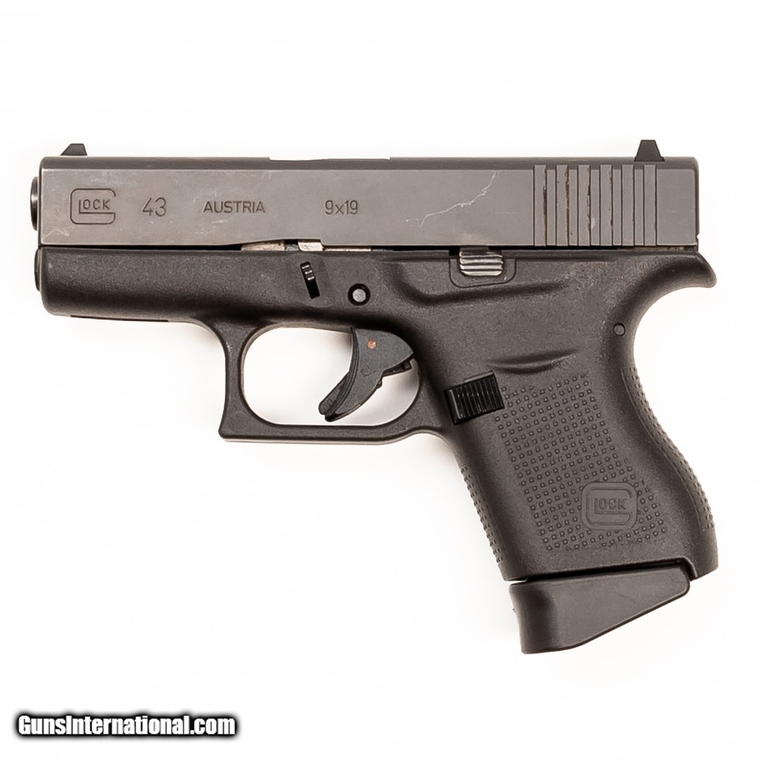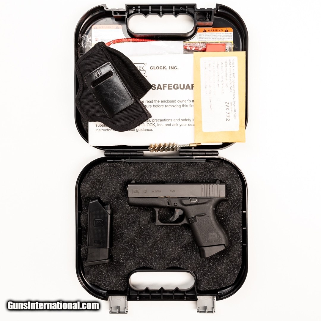 Description: Guns Listing ID: 880519 The Glock 43 is an award-winning single-stack handgun known for its ease of concealment, accuracy, and reliability. It‚‚s an excellent option for daily carry or a deeply concealed backup for law enforcement agents, defense contractors, and security guards. This G43 includes the original case, manual, two 6-round magazines, and a right-handed IWB DeSantis holster. Get the best bang for your buck when you get a Certified Used Firearm . When you see the Certified Used stamp on any of our firearms, you can be confident that you’re getting exactly what you want – a gun only in very good to excellent condition and held to the highest quality standard. All Certified Used Guns come with a ‘no questions asked’ return policy . PLUS, ALL CERTIFIED USED GUNS SHIP FREE SOLD Manufacturer: GLOCK Model: G43 Caliber Info: 9MM LUGER (9X19 PARA) Condition: Used - Certified Barrels: 3.3 BARREL Finish: BLACK |