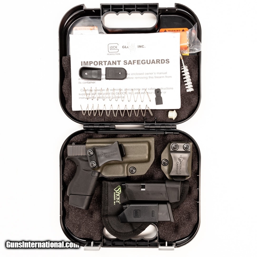 Description: Guns Listing ID: 907581 The Glock 43 is an award-winning single-stack handgun known for its ease of concealment, accuracy, and reliability. It‚‚s an excellent option for daily carry or a deeply concealed backup for law enforcement agents, defense contractors, and security guards. This G43 includes the original case, manual, one 6-round magazine, two 8-round magazines with Vickers bas plates, a Sticky holster, a right-handed IWB concealed carry holster, and a magazine holster. Get the best bang for your buck when you get a Certified Used Firearm . When you see the Certified Used stamp on any of our firearms, you can be confident that you’re getting exactly what you want – a gun only in very good to excellent condition and held to the highest quality standard. All Certified Used Guns come with a ‘no questions asked’ return policy . PLUS, ALL CERTIFIED USED GUNS SHIP FREE SOLD Manufacturer: GLOCK Model: G43 Caliber Info: 9MM LUGER (9X19 PARA) Condition: Used - Certified Barrels: 3 BARREL Finish: BLACK |