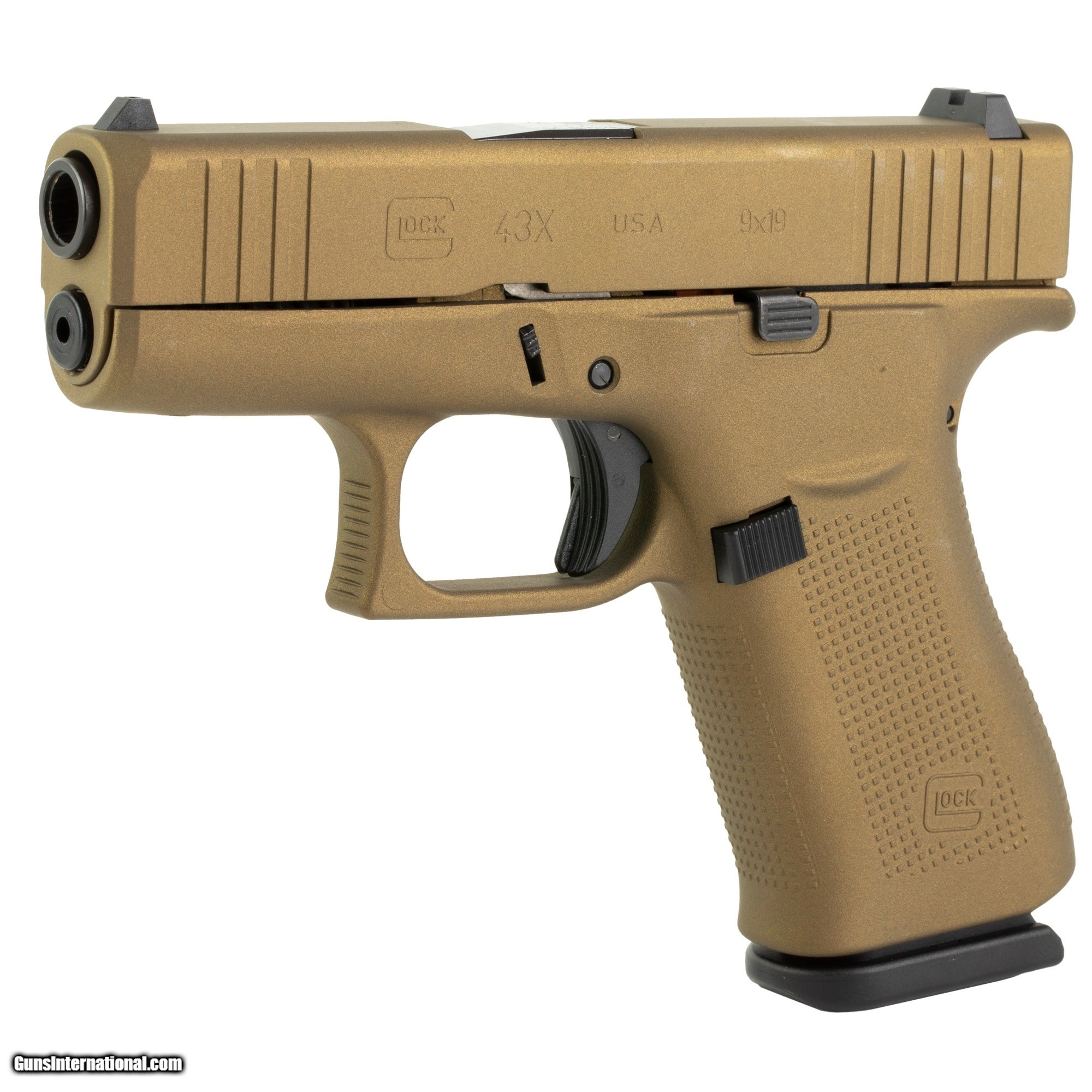Description: Guns Listing ID: prod238705 The Glock 43X Subcompact delivers high performance, reliability, and accuracy. It comes chambered in 9mm with a 3.41 inch barrel. Features of the 43X include fixed sights, a rough texture beavertail polymer grip, a burnt bronze nPVD steel slide, a burnt bronze frame, and two 10-round magazines. SOLD Manufacturer: GLOCK Model: G43X Caliber Info: 9MM LUGER (9X19 PARA) Condition: new Barrels: 3.4 BARREL Finish: BURNT BRONZE CERAKOT |
