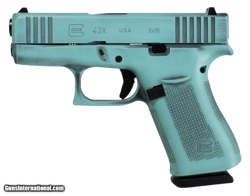 Description: Guns Listing ID: 1312509 GLOCK 43X SHARK COAST TACT 9MM 3.4\" DIRTY ROBIN SOLD Manufacturer: GLOCK Model: G43X Caliber Info: 9MM LUGER (9X19 PARA) Condition: new Barrels: 3.41 BARREL Finish: ROBIN‚‚S EGG BLU |