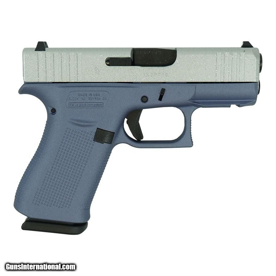 Description: Guns Listing ID: prod367480 Glock G43X Crushed Silver Glitter Slide/Orchid Purple Frame Handgun 9mm Luger, Magazines(2) - 10 Rounds, 3.41\" Barrel SOLD Manufacturer: GLOCK Model: G43X Caliber Info: 9MM LUGER (9X19 PARA) Condition: new Barrels: 3.41 BARREL Finish: CRUSHED ORCHID CERAKOTE |