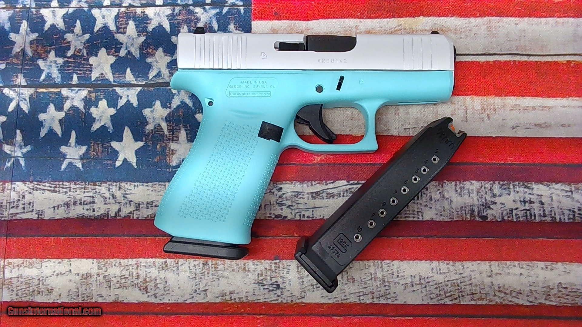 Description: Guns Listing ID: 480880 Pre-owned in \"LIKE NEW\" condition. This firearm appears unfired. This is a beautiful firearm with the robbins egg blue frame and pearl white slide. Great for conceal carry. Glock 43X, Semi-automatic, Striker Fired, Sub-Compact, 9MM, 3.41\", 10 Rounds, 2 Mags, Robin‚‚s Egg Blue With Pearl White Slide, Fixed Sights, Polymer, Skydas Cerakote These photos represent the exact firearm for sale. As with many used firearms, this item may contain scratches and/or signs of wear. This is not always the case but should not be unexpected SOLD Manufacturer: GLOCK Model: G43X Caliber Info: 9MM LUGER (9X19 PARA) Condition: Used - Non-Certified Barrels: 3.41 BARREL Action: STRIKER Finish: ROBIN‚‚S |