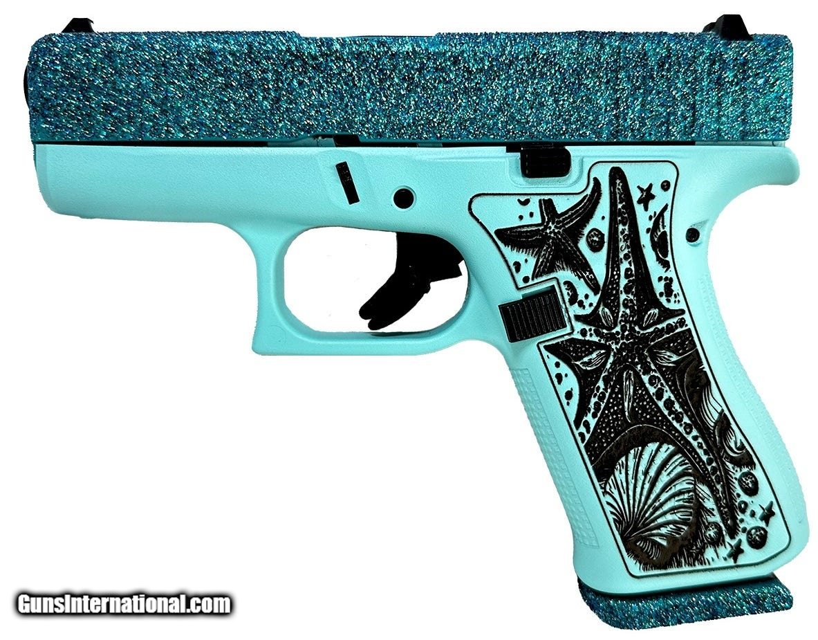 Description: Guns Listing ID: 353540 The Glock G43X \"Sea Star Glitter\" is a distinct and eye-catching variant of the popular Glock G43X, chambered in 9mm. It features a 3.41-inch barrel and has a magazine capacity of 10 rounds. This model stands out with its unique \"Sea Star Glitter\" Cerakote finish in blue, adding a decorative touch to the reliable and efficient design that Glock is known for. SOLD Manufacturer: GLOCK Model: G43X Caliber Info: 9MM LUGER (9X19 PARA) Condition: new Barrels: 3.41 BARREL Action: DOUBLE ACTION Finish: GLITTER |