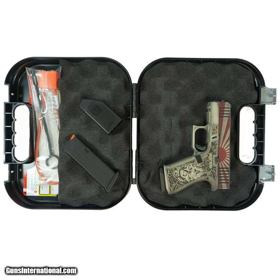 Description: Guns Listing ID: 584560 The Glock Rising Sun 9mm 3.4\" Barrel 10 round Habanero Red/Nickel, also known as the Glock g43X 9mm, is a remarkable firearm that combines precision engineering with a striking aesthetic. This USA-made pistol is designed for those who appreciate both functionality and style, featuring a custom \"Rising Sun Bushido\" design that sets it apart from the ordinary. The deep laser engraved slide and grip, along with the Habanero Red and Bright Nickel Cerakote finish, give this firearm a unique and stylish appearance that is sure to turn heads. The distressed finish adds a touch of rugged elegance, making it a perfect choice for collectors and enthusiasts alike. With a 3.4-inch barrel and a 10-round capacity, this Glock 43X is chambered in 9mm Luger, offering a balance of power and control that is ideal for both personal defense and recreational shooting. The RMR/c optic cut allows for easy customization with your preferred optics, enhancing accuracy and target acquisition. An accessory rail provides additional versatility, enabling the attachment of lights or lasers to suit your tactical needs. The Glock‚s renowned Safe Action system ensures reliable performance and peace of mind, while the fixed Glock sights offer dependable target alignment. Weighing in at just 18.70 ounces, this compact pistol is easy to handle and carry, making it an excellent choice for concealed carry. The overall length of 6.50 inches ensures a comfortable fit in most holsters, while the 24 N trigger pull provides a smooth and consistent shooting experience. Whether you‚re a seasoned shooter or a first-time gun owner, the Glock Rising Sun 9mm 3.4in 10rd Habanero Red/Nickel offers a perfect blend of innovation, craftsmanship, and style. Manufacturer: GLOCK Model: G43X Caliber Info: 9MM LUGER (9x19 PARA) Condition: new Barrels: 3.4" BARREL Action: SEMI AUTOMATIC Finish: RISING SUN BUSHIDO Price: $699.99 Contact Seller |