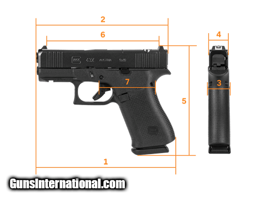 Description: G43X Black Chambered in 9mm Luger the G43X features a compact Slimline frame with a black slide. The 10-round magazine capacity makes it ideal for concealed carry. Designed for comfort, The G43X combines a compact-size grip length, a built-in beaver tail and a subcompact-slim slide for a comfortably balanced, versatile grip that´s ideal for a variety of users. The frame incorporates elements of the Gen5 and Slimline series such as the short trigger distance, a frame with a built-in beavertail, a reversible magazine catch and the incredibly accurate, match-grade GLOCK Marksman Barrel (GMB) and precision-milled front serrations. 1Length (Overall)**165 mm | 6.50 inch 2Slide Length154 mm | 6.06 inch 3Width (Overall)28 mm | 1.10 inch 4Slide Width22 mm | 0.87 inch 5Height incl.Mag.128 mm | 5.04 inch 6Line of Sight (Polymer)133 mm | 5.24 inch Line of Sight (Steel)132 mm | 5.20 inch Line of Sight (GNS)131 mm | 5.16 inch 7Trigger Distance**67 mm | 2.64 inch *FOR GEN4/GEN5 MODELS: Check out the Gen5 and Gen4 Technology area for medium/large backstraps. SOLD Manufacturer: GLOCK Model: G43X Bore: NEW Condition: NEW Metal Condition: NEW Bore Condition: NEW Action: SEMI-AUTO Triggers: GLOCK SAFE TRIGGER Finish: BLUED Sights: STANDARD FACTORY SIGHTS Manufacture Date: NEW Case: MANUAFCTURES CASE Item Location: Florida |