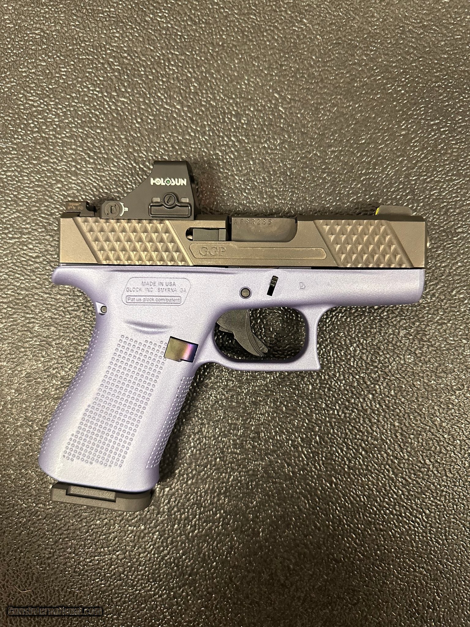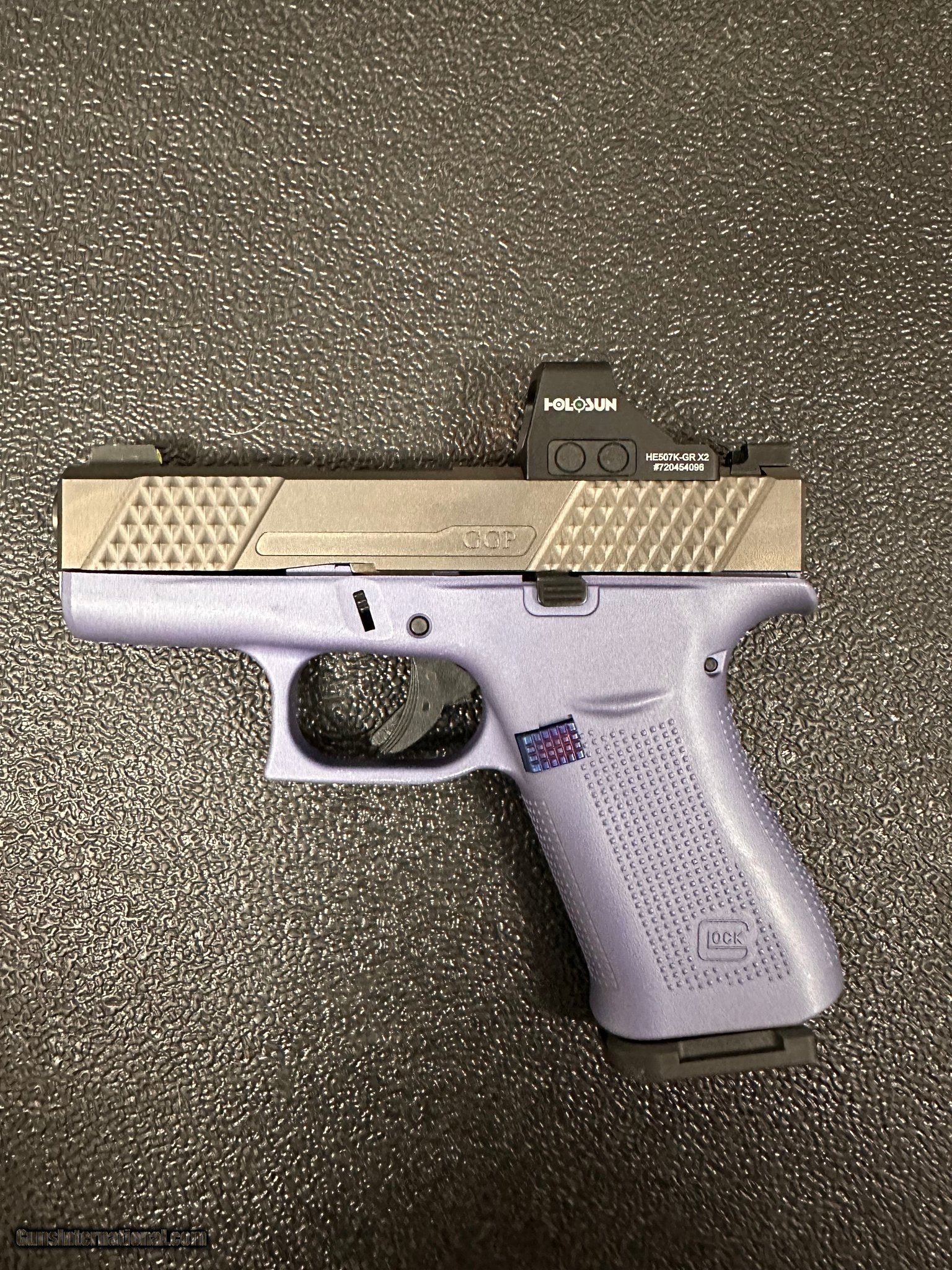 Description: Guns Listing ID: 553968 Glock 43 Factory Cerakote purple Holosun 507K (green) Grey Ghost Precision OR upper Trijicon HD night sights (yellow) Shield arms 15rnd magazine Shield arms mag release 2 10 round Glock magazine Comes with factory Glock 43 upper SOLD Manufacturer: GLOCK Model: G43X MOS Caliber Info: 9MM LUGER (9X19 PARA) Condition: Used - Non-Certified Barrels: 3.4" BARREL Action: STRIKER FIRED Finish: BLACK Weight: 1.4 lbs. |