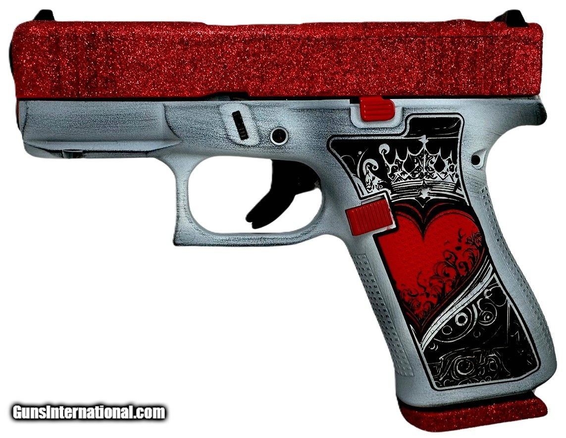 Description: Guns Listing ID: 493506 Glock GlitterGunz is a durable sparkling coating applied utilizing specialized equipment and a patent-pending process. The slight tactile texture of the coating provides the user with a non-slip grip making it easier to operate a semiauto handgun‚s slide. The Glock G43X MOS offers the trusted performance of the G43X series with a bold new look. Its custom Queen of Hearts design, featuring a red and black theme with a glittering slide, elevates this model‚s visual appeal without compromising the brand’s hallmark reliability. This pistol includes the Modular Optic System (MOS), allowing for easy optic mounting, along with front slide serrations for enhanced control. With two 10-round magazines, the Glock 43X MOS maintains its lightweight, compact design, ensuring ease of carry and quick access. Manufacturer: GLOCK Model: G43X MOS Caliber Info: 9MM LUGER (9x19 PARA) Condition: new Barrels: 3.41" BARREL Action: SEMI AUTOMATIC Finish: RED AND BLACK Weight: 1.16 LBS. Price: $625.99 Contact Seller |