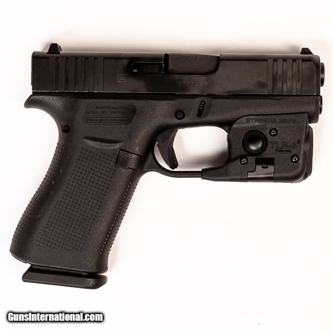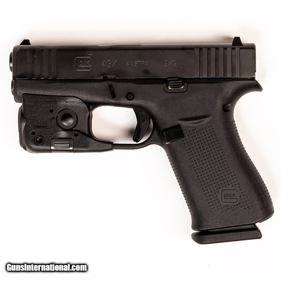 Description: Guns Listing ID: 463435 The Glock G43X is a semi-automatic handgun that delivers a perfect fit for everyday carry alongside the durability and reliability that has come to be expected from Glock. It offers a slim polymer frame with built-in beavertail. The magazine catch is reversible, and the grip is stippled to reduce slippage. This Glock 43X sports a Streamlight TLR-6 light/laser. Purchase includes the original case, manual, two 10-round magazines, one 15-round magazine, and a loader. SOLD Manufacturer: GLOCK Model: G43X Caliber Info: 9MM LUGER Condition: Used - Certified Barrels: 34 BARREL Finish: BLACK |