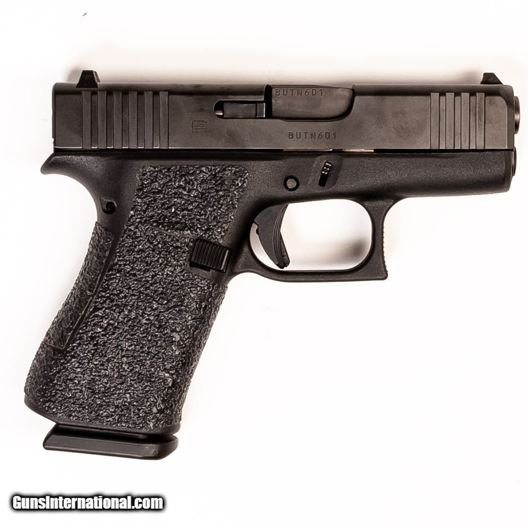 Description: Guns Listing ID: 421217 The Glock G43X is a semi-automatic handgun that delivers a perfect fit for everyday carry alongside the durability and reliability that has come to be expected from Glock. It offers a slim polymer frame with built-in beavertail. The magazine catch is reversible, and the grip is stippled to reduce slippage. This Glock 43X has a Talon grip wrap and includes the original case, manual, two 10-round magazines, and a loader. SOLD Manufacturer: GLOCK Model: G43X Caliber Info: 9MM LUGER (9X19 PARA) Condition: Used - Certified Barrels: 3.2 BARREL Finish: BLACK |