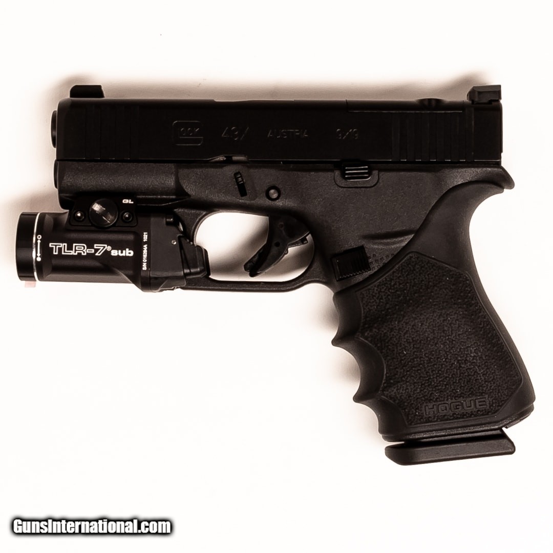 Description: Guns Listing ID: 635315 The Glock G43X delivers a perfect fit for everyday carry alongside the durability and reliability that has come to be expected from Glock. It offers a slim polymer frame with built-in beavertail. The magazine catch is reversible, and the grip is stippled to reduce slippage. This Glock 43X has night sights and a Streamlight TLR-7 sub rail flashlight. Purchase includes the owner‚‚s manual and two 10-round magazines SOLD Manufacturer: GLOCK Model: G43X Caliber Info: 9MM LUGER (9X19 PARA) Condition: Used - Certified Barrels: 3.25 barrel Finish: BLACK |