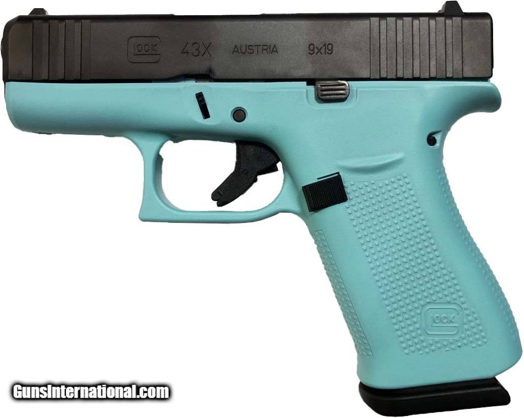 Description: Guns Listing ID: 610320 The Glock G43X offers superior accuracy and performance in an ergonomic, durable, and reliable handgun design. It comes chambered in 9mm with a 3.41 inch barrel. Features include fixed sights, front slide serrations, and two 10 round magazines. SOLD Manufacturer: GLOCK Model: G43X Caliber Info: 9MM LUGER (9X19 PARA) Condition: new Barrels: 3.4 BARREL Finish: ROBIN‚‚S EGG BLU |