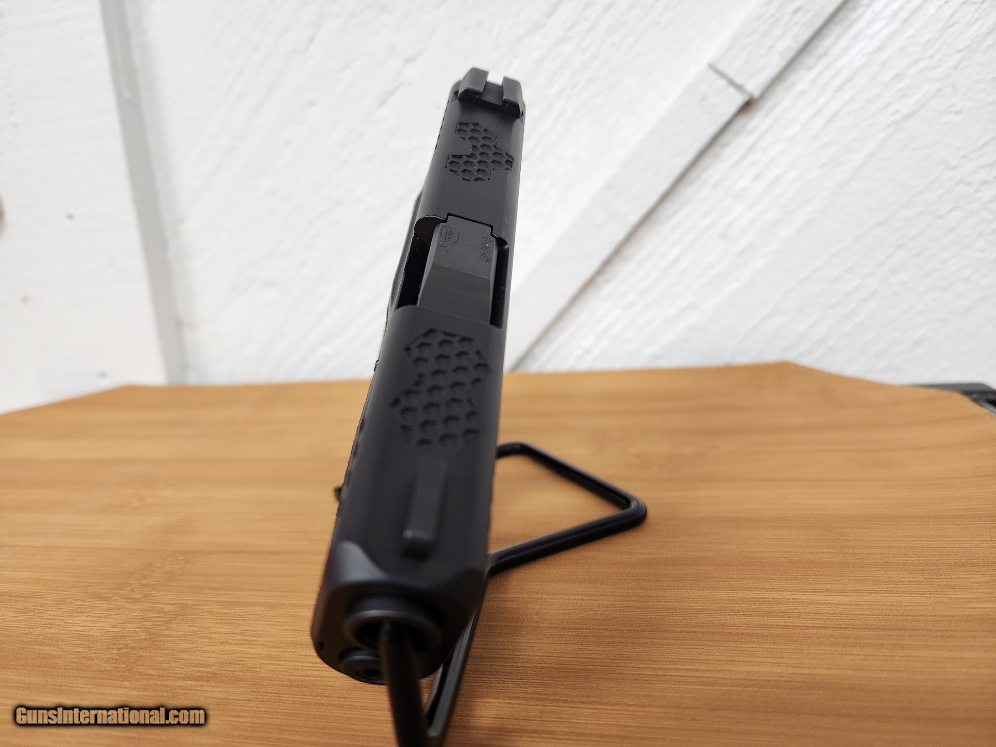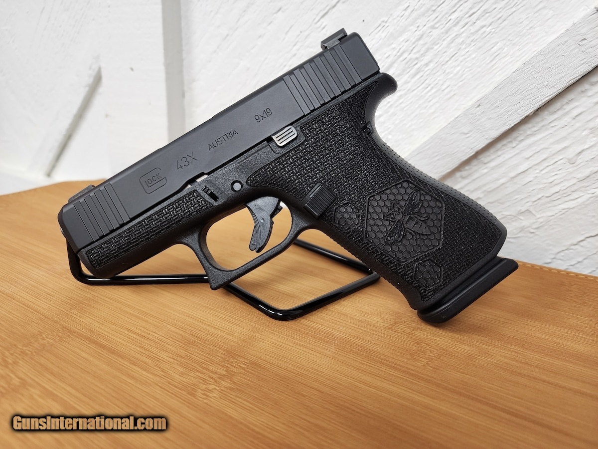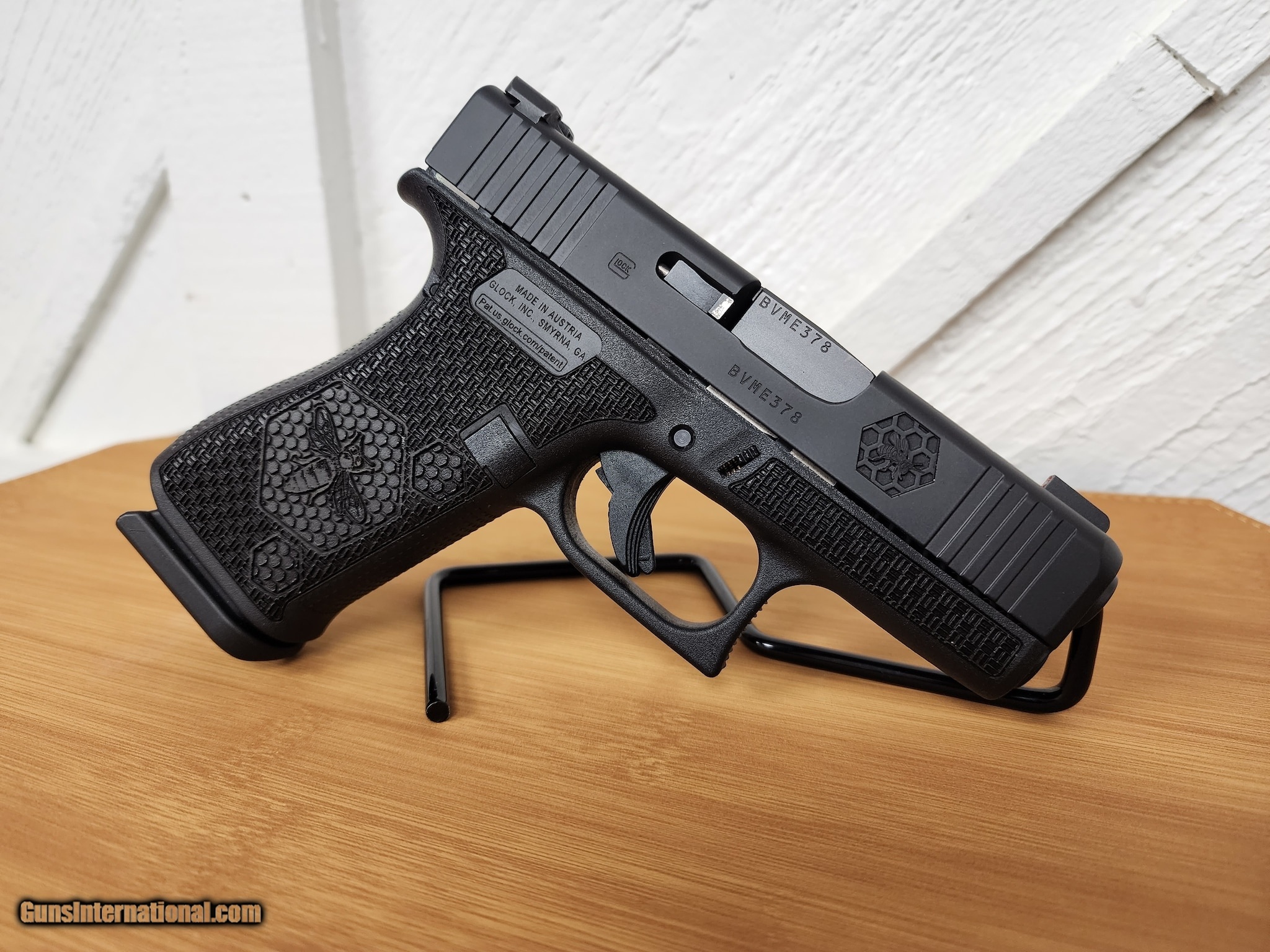 Description: Guns Listing ID: 732446 Custom Bee themed Glock 43X. This G43X has marks in the slide that mimic a reveal of a honeycomb structured slide. The main stippling is a basketweave pattern with honeycombs popping through. Bumblebees are also engraved on both sides of the grip. It is finished with a Cerakoted slide to protect the engraving. The Glock 43X has Ameriglo night sights installed. Two 10-round magazines. SOLD Manufacturer: GLOCK Model: G43X Caliber Info: 9MM LUGER (9X19 PARA) Condition: Used - Non-Certified Barrels: 3.4 BARREL Finish: BLACK |