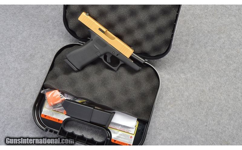 Description: Custom edition Gold cerakote finish by Apollo Custom. New in Factory Box w/ extra 10 round mag and loader. 9mm Luger SOLD Metal Condition: NEW Barrels: 3.41 Inch Triggers: "Glock Safety Action Trigger, Striker Fire Weight: 19 oz. Sights: "White Outline Rear Sight, White Dot Front Item Location: Buda, TX |