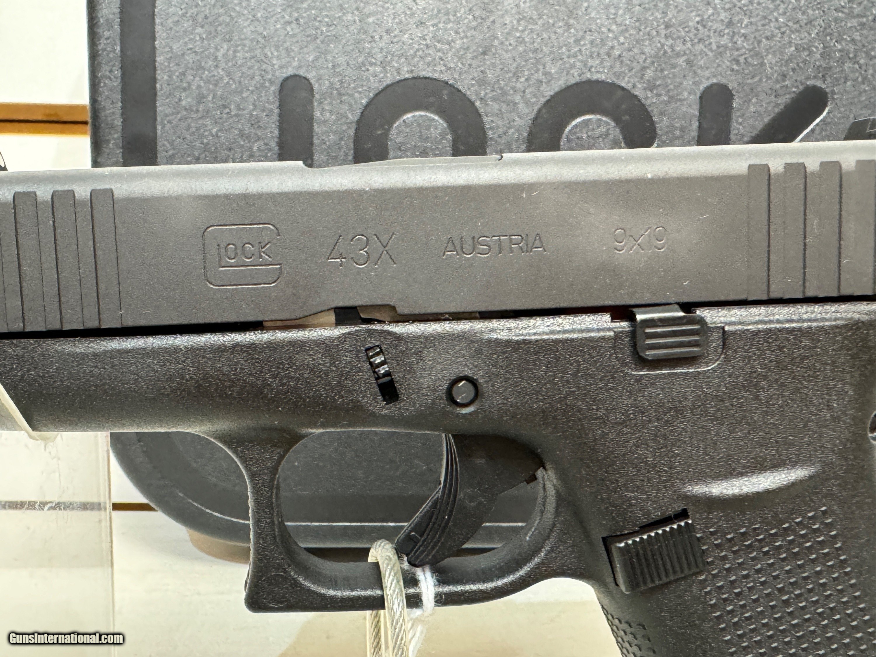 Description: new GLK 43X 9MM PST 10RD B FS 764503037894 new in hard clock case (CALIBER:9MM); (MAG CAPACITY:LUGER); (GUN TYPE:PISTOL: SEMI-AUTO); (MODEL SERIES:43X); (ACTION:SAFE ACTION); (CAPACITY:10+1); (FINISH:BLACK MATTE); (STOCK:BLACK POLYMER); (SIGHTS:FT: WHITE DOT RR: WHITE OUTLINE); (BARREL LENGTH:3.41); (OVERALL LENGTH:6.50); (DEPT:HANDGUN) Buyer pays shipping Millers Gun Center Located in New Castle, Delaware "Home of TAX-Free shopping" No Credit Card Fees Send Gun international inquiry and then call 302-328-9747 to complete your purchase SOLD Serial Number: CBGM174& 1 more |