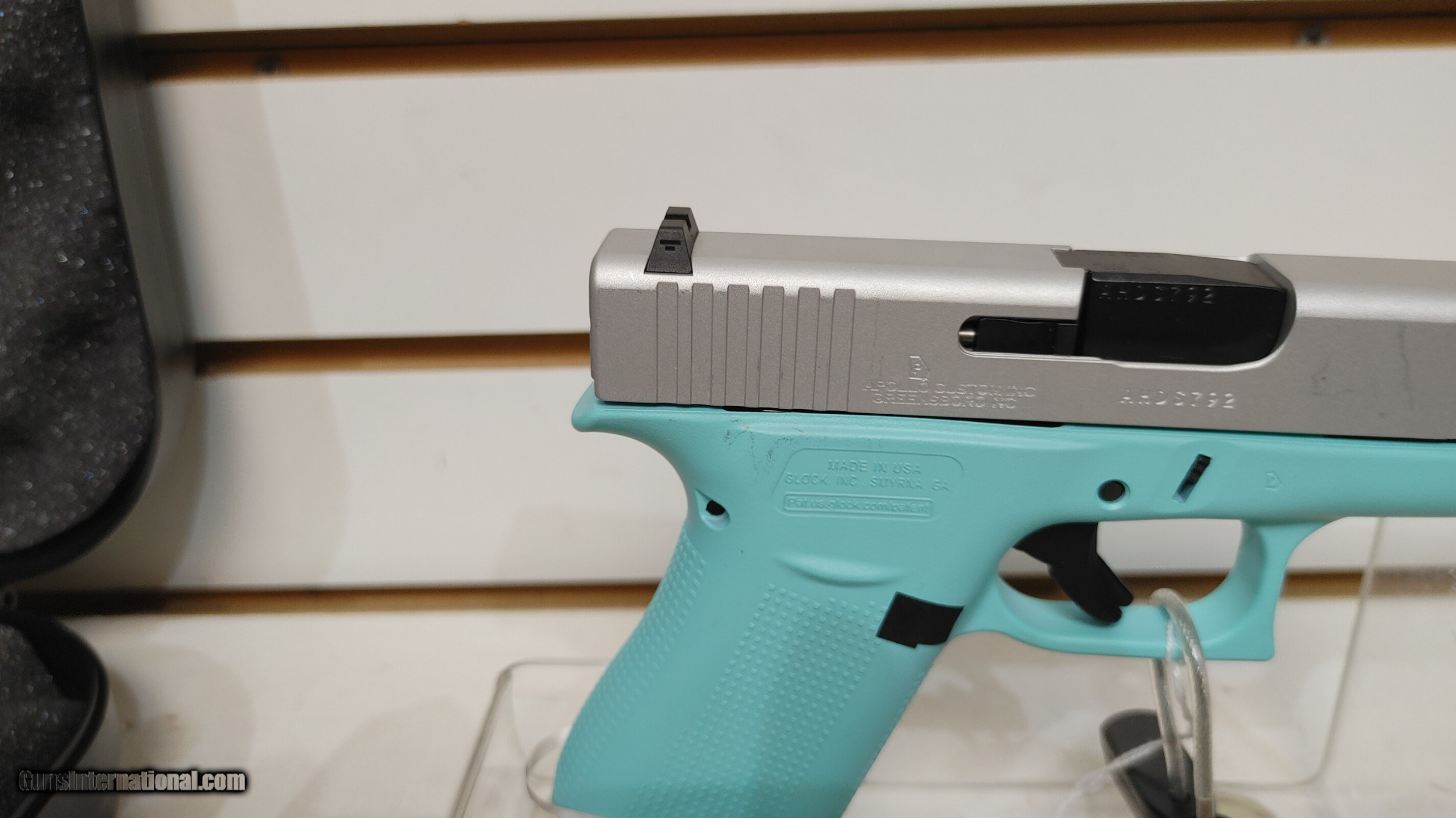 Description: new Glock 43X Robbins Egg Shimmering Alum 9mm ACG-00865 2 mags hard plastic case new UPC 850386008653 MPN ACG-00865 Brand Glock Model 43X Robbins Egg Shimmering Alum Caliber 9mm Capacity 10+1 Features Apollo Custom Edition;Robins Egg Blue Frame, Shimmering Alum Slide Type Pistol: Semi-Auto Action Safe Action Finish Cerakote Shimmering Aluminum Stock Cerakote Robins Egg Blue Sight FT: White Dot RR: White Outline Safety Safe Action - 3 Separate Automatic Safeties Receiver Cerakote Robins Egg Blue Barrel Length 3.41 Overall Length 6.50 Weight 16.40 oz Number Of Mags 2 Buyer pays shipping Millers Gun Center Located in New Castle, Delaware "Home of TAX-Free shopping" No Credit Card Fees Send Gun international inquiry and then call 302-328-9747 to complete your purchase SOLD Serial Number: AHDS792 |
