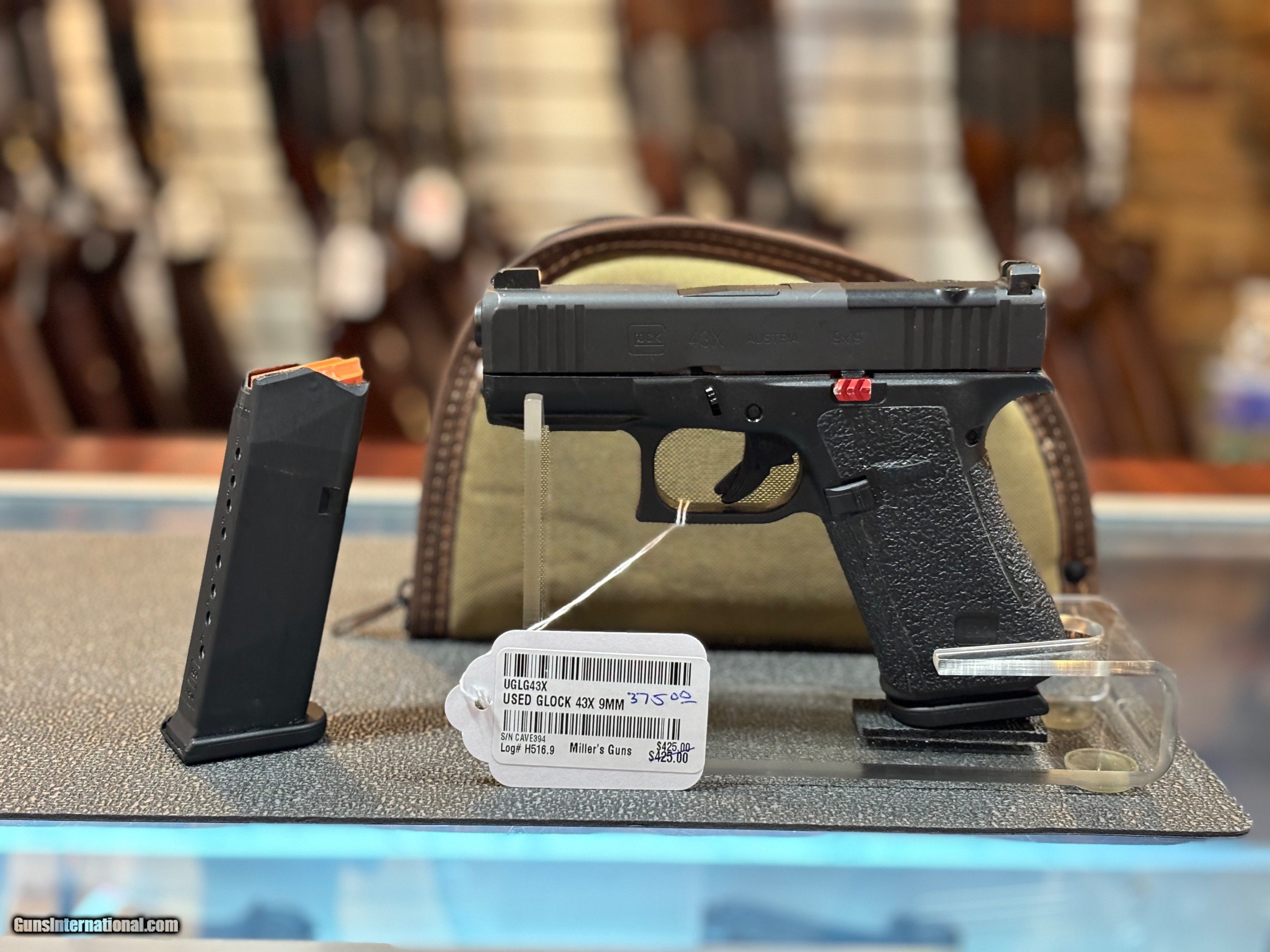 Description: USED Glock 43X MOS Optics ready slide 10 round capacity (2) magazines Night sights Talon grip material installed Aftermarket slide stop lever Soft case included SOLD Handgun Caliber: 9x19mm Parabellum (9mm Luger, 9x19mm NATO) Manufacturer: Glock Model: 43X Serial Number: CAVE394 Condition: Good |