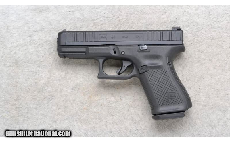 Description: This Glock Model 44 is a right hand semi-auto pistol in .22 Long Rifle Cal. It has a 3.75 inch barrel with a front and rear serrated slide. A blade front sight and notch rear sight with white highlights. The grip is a textured black polymer. It has a lower accessory rail. .22 Long Rifle SOLD Chambers: 10 shot magazine. Metal Condition: Excellent. Bore Condition: Excellent. Barrels: 3.75 inch barrel with a front and rear serrated slide. Weight: 16 oz. Sights: Blade front. Notch rear. White highlights. Item Location: Richfield, WI |