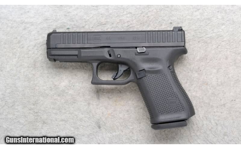 Description: This Glock Model 44 is a right hand semi-auto pistol in .22 Long Rifle Cal. It has a 4 inch barrel with a front and rear serrated slide. A blade front sight and notch rear sight with white highlights. The grip is a textured black polymer. It has a lower accessory rail. .22 Long Rifle SOLD Chambers: 10 round magazine. Metal Condition: Excellent. Bore Condition: Excellent. Barrels: 4 inch barrel with a front and rear serrated slide. Weight: 12 oz. Sights: Blade front. Notch rear. White highlights. Item Location: Richfield, WI |