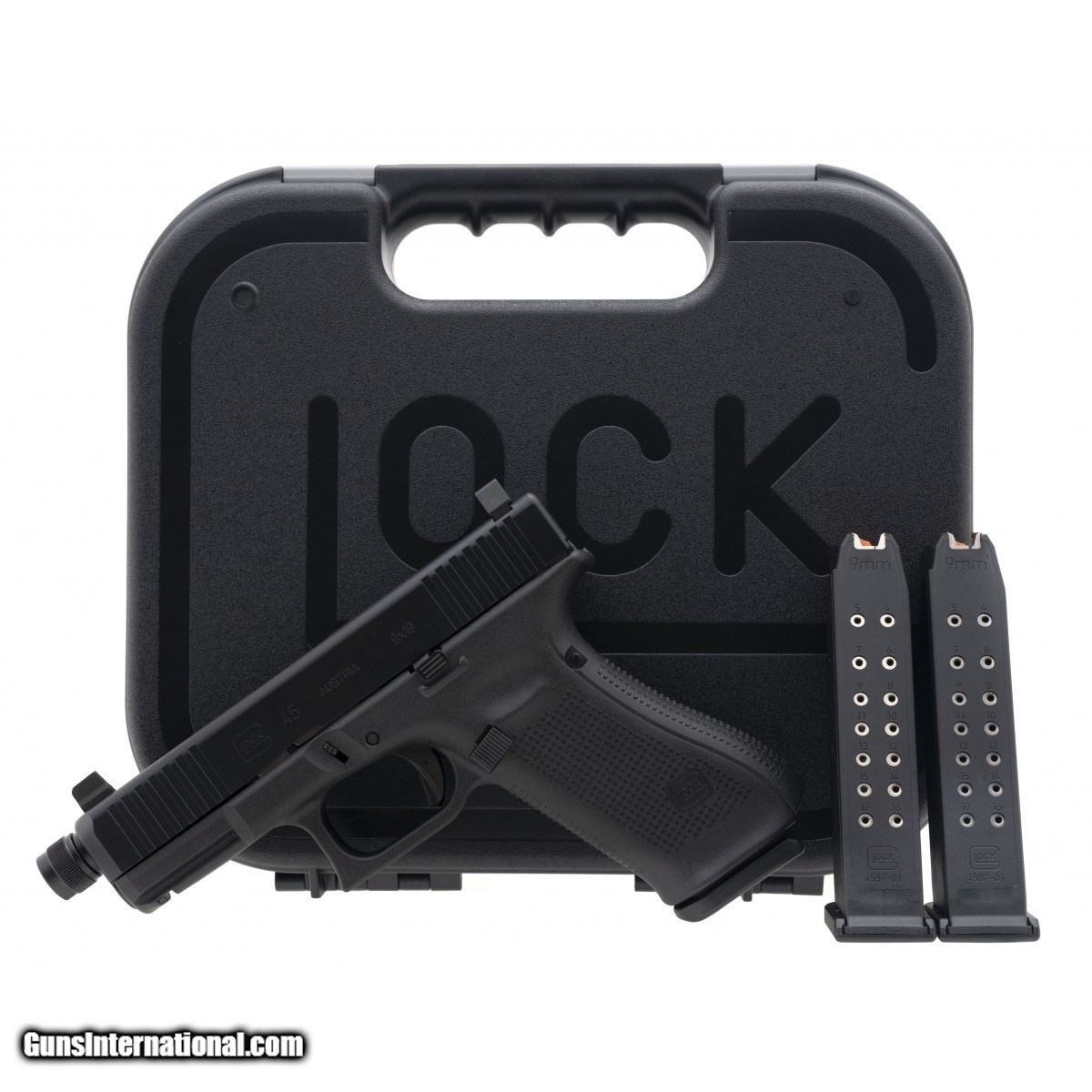 Polymer frame, stiker fire pistol. Threaded 4.02 Glock Marksman barrel. Ameriglo Black Tall height sights. Includes (3) 17 round magazines. NEW. UPC:764503036750