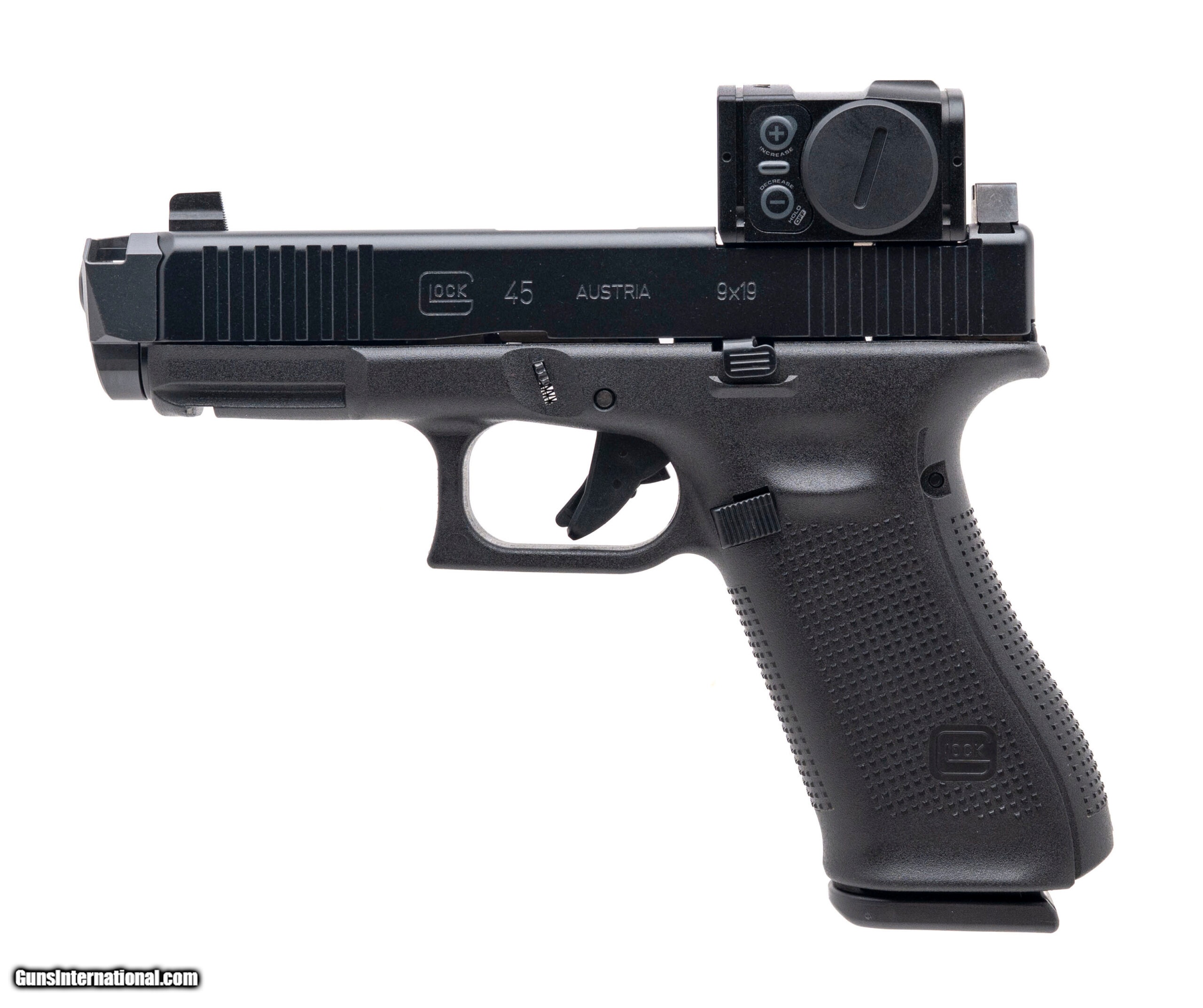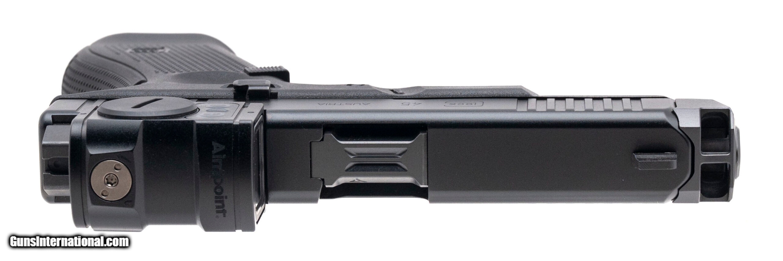 Description: "SN: CCMP512. Modern production, 9mm with a 4.02"" radian ramjet barrel w/afterburner compensator. Striker fired pistol with an Aimpoint Acro P2 red dot optic co-witnessed w/suppressor height sights. Overall condition is excellent. SOLD |