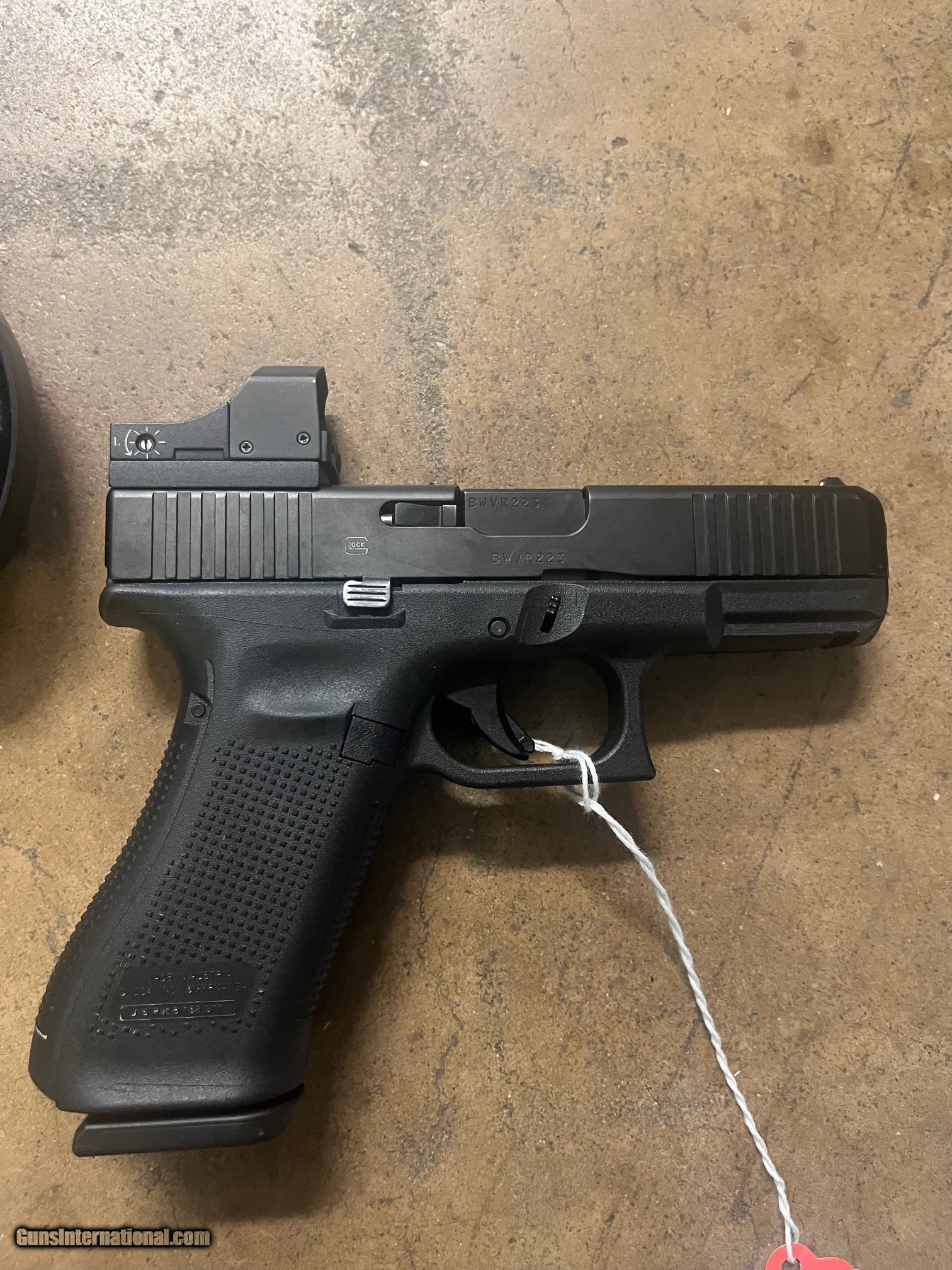 Description: Guns Listing ID: 492317 comes with case and two 17 mags (three total) and ADE green dot The GLOCK® 45 Gen5 9mm Semi-Auto Pistol is the semi-compact crossover many have desired for years. The G45 is a hybrid between a Glock 19 and a Glock 17. You‚‚ll get the shorter slide assembly (4.02\" Barrel) from the 19 paired with the longer grip of the 17. For some hands, the Glock 19 grip is a little too short. That‚‚s where the 45 steps in. The G45 comes with the same popular upgrades of all Generation 5 GLOCK pistols like the Glock Marksman Barrel and overall elimination of leaf springs, which have since been replaced by new coil spring designs for increased longevity and reliability. The slide release is ambidextrous and the magazine catch is reversible. The slide has factory serrations on the front and back. Plus, the front of the firearm is now beveled for easier re holstering. The 45 fits almost any 19 holster. The barrel features GLOCK‚‚s latest ion-bonded nDLC coating, which is a truer black to previous generations with improved ability to function in dry conditions. A long-requested feature, the front strap no longer has finger grooves, allowing any finger size to fit comfortably around the grip. GLOCK‚‚s MBS (Modular Backstrap System) allows you the ability to add or remove additional backstop pieces, including a beaver tail for those with larger hands. This eliminates slide bite. In front of the trigger guard you‚‚ll also receive an integral accessory rail for a wide variety of light and laser accessories. Includes three 17 round flush-fit magazines. Chambered in 9mm Luger Compact slide like the GLOCK 19 Full-sized grip like the GLOCK 17 Glock Marksman Barrel Gen5 increased reliability Ambidextrous slide stop Reversible mag catch Front and rear cocking serrations Beveled front end for easier reholstering Ion-bonded nDLC coating Straight front strap Integral accessory rail Includes three 17 round maga SOLD Manufacturer: GLOCK Model: 45 Caliber Info: 9MM LUGER (9x19 PARA) Condition: Used - Non-Certified Barrels: 4 Finish: black |