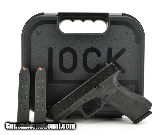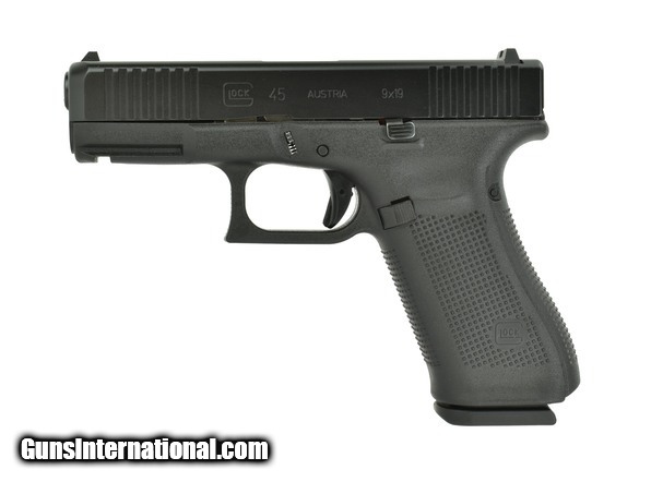 Description: Glock 45 9mm caliber pistol. Police model with front serrations, box and magazines. Excellent condition.