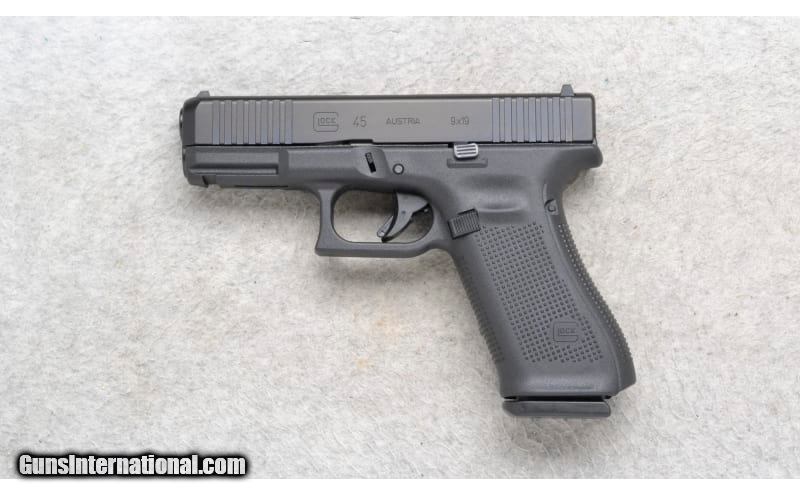Description: This Glock Model 45 is right hand semi-auto pistol in 9mm Cal. It has a 4 inch barrel with a front and rear serrated slide. A blade front sight and notch rear sight with white highlights. The grip is a textured black polymer. It has a lower accessory rail. 9mm Parabellum SOLD Chambers: 17 round magazine. Metal Condition: Excellent. Bore Condition: Excellent. Barrels: 4 inch barrel with a front and rear serrated slide. Weight: 26 oz. Sights: Blade front. Notch rear. White highlights. Item Location: Richfield, WI |
