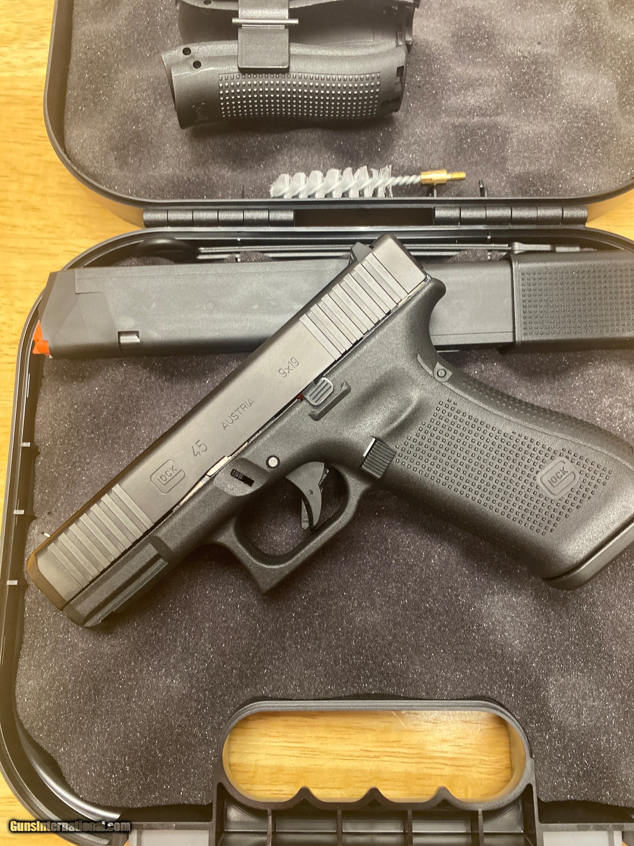 Description: Guns Listing ID: 461247 LE demo gun, never fired Comes with everything SOLD Manufacturer: GLOCK Model: 45 G45 Gen 5 Caliber Info: 9 MM Condition: Used - Non-Certified Barrels: 4.02 BARREL Finish: BLACK |