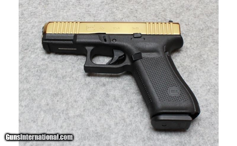 Description: Glock 45 Gen 5 semiautomatic pistol chambered in 9mm. This Glock has a gold high polish slide. Comes with factory box and 3- magazines. 9mm Luger SOLD Metal Condition: Very Good Wood Condition: Very Good Bore Condition: Bright And Clear Barrels: 4 Inch Triggers: Factory Weight: 1 lbs 8 oz Sights: Factory Plastic Item Location: Allen, TX |