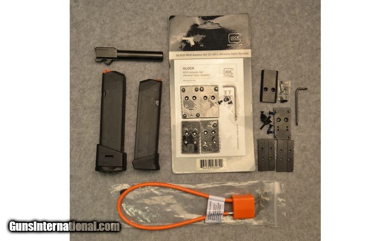 Description: Glock 45 MOS in 9mm in very good condition. Come with MOS mounting plates and is ready for a red dot optical sight. Threaded barrel and suppressor height sights are upgrades. 9mm Luger SOLD Metal Condition: Very good Bore Condition: Very good Barrels: Includes threaded after market barrel and original factory barrel. Weight: 1.5 lbs Sights: "Raised suppressor height sights, Glock MOS mounting plates included Item Location: christiana |