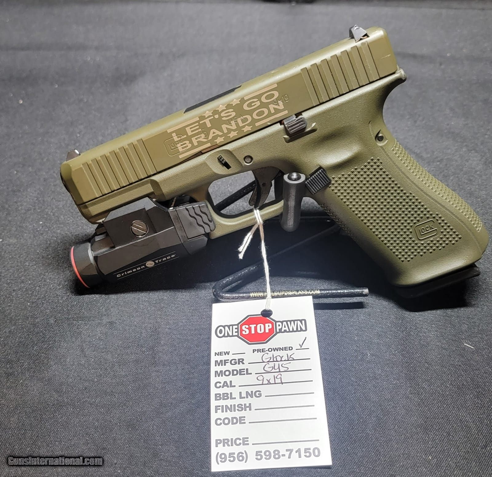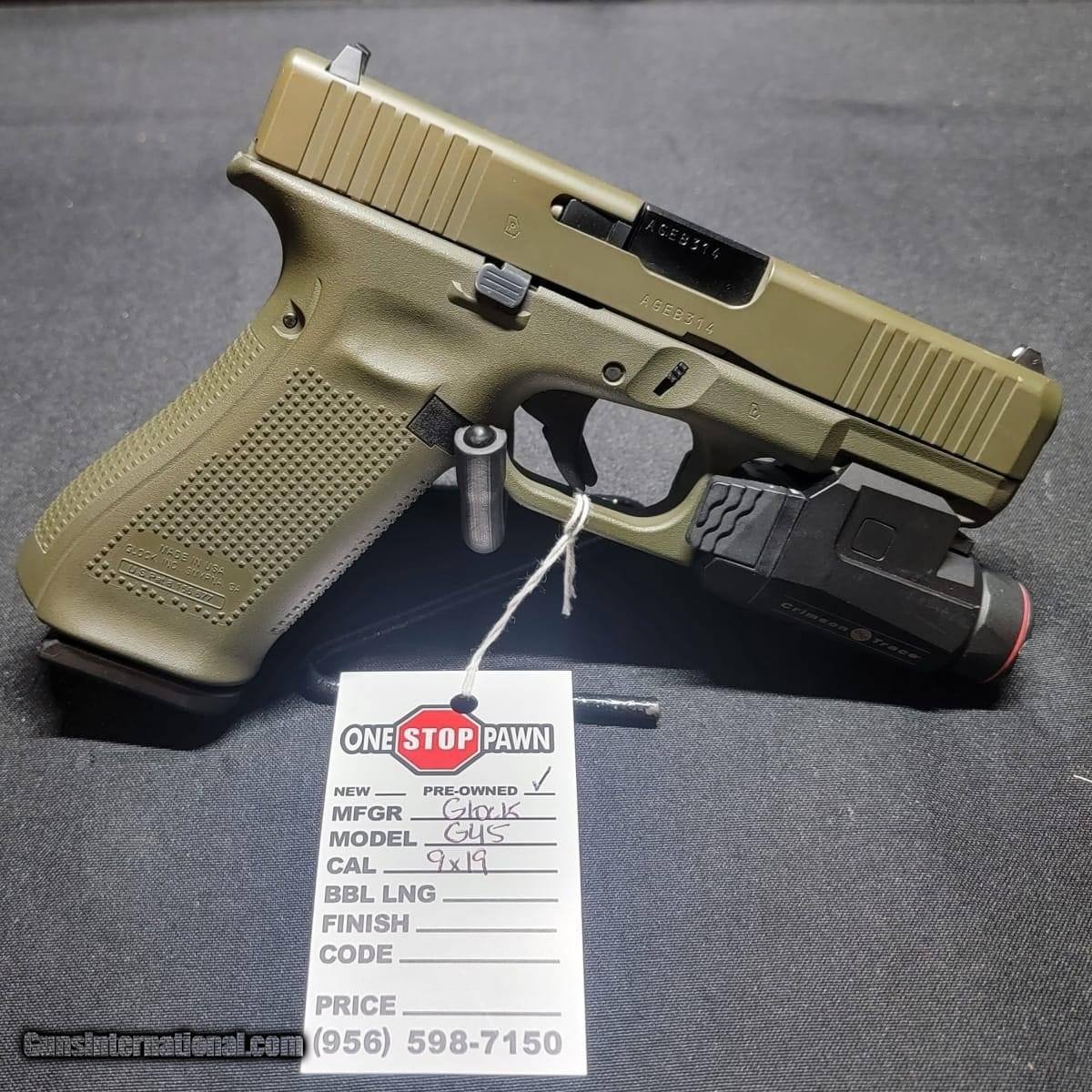 Description: Guns Listing ID: 1352258 PRE OWNED!!! NO CASE 1 MAG CRIMSON TRACE LIGHT DESIGN ON LEFT SIDE OF SLIDE SOLD Manufacturer: GLOCK Model: G45 Caliber Info: 9MM LUGER (9X19 PARA) Condition: Used - Non-Certified Barrels: 4 BARREL Finish: GREEN |