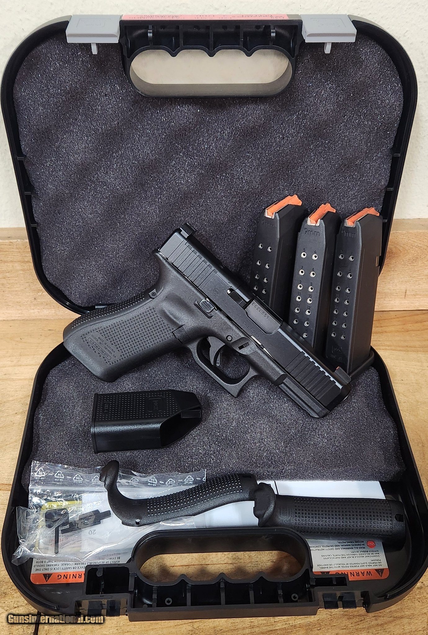 Description: Guns Listing ID: 1332252 In nice condition. Has Ameriglo H3 Night sights. Includes the factory box, 3 mags, speed loader, manual, and backstraps. SOLD Manufacturer: GLOCK Model: G45 GEN 5 MOS Caliber Info: 9MM LUGER (9X19 PARA) Condition: Used - Non-Certified Barrels: 4.02 BARREL Finish: BLACK |