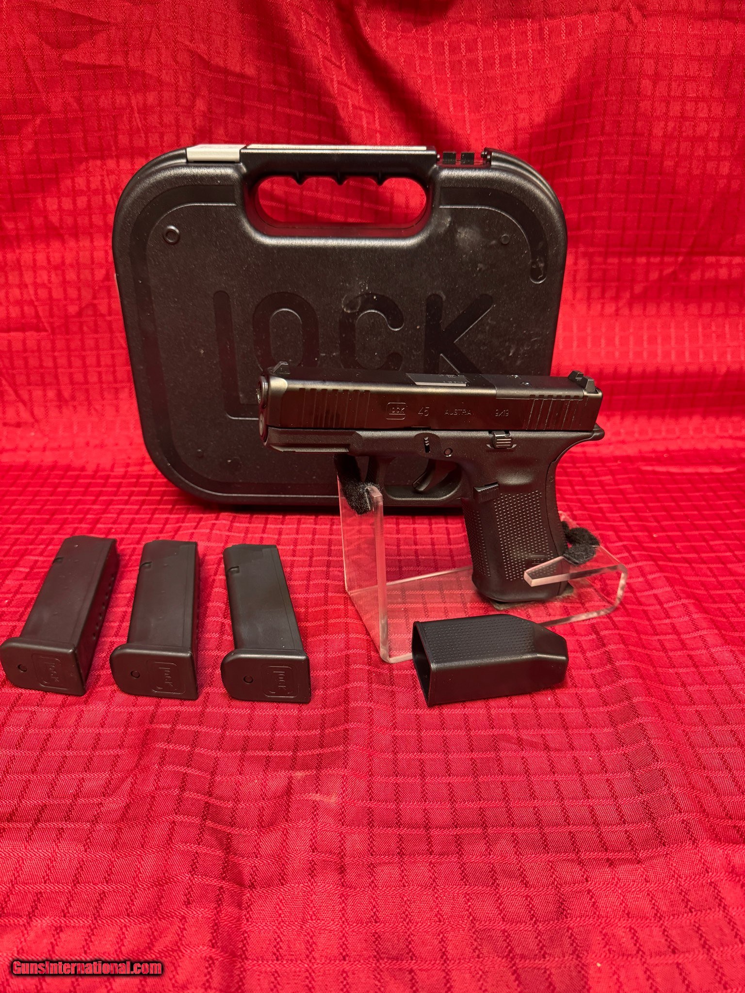 Description: Guns Listing ID: 577924 GLOCK G45 MOS - 9MM LUGER,THREE MAGAZINES - 10 ROUNDS EACH, 4.02 \"BARREL, SPEED LOADER, GLOCK CASE. MOS ADAPTER PLATES NOT INCLUDED. THIS GLOCK 45 MOS IS IN EXCELLENT CONDITION! The compact crossover pistol G45 MOS in 9x19mm combines a compact slide with a full size frame and has all the benefits of a Gen5 model. The slide in MOS configuration makes it easy to mount a reflex sight on the pistol’s slide without the need for a new slide or separate mounting system. Utilizing the design and engineering GLOCK developed for its military pistol (G19X), combined with operator and worldwide Law Enforcement specifications. It comes with front serrations (FS) which provide an additional tactile surface choice when manipulating the slide giving the operator positive traction even with wet or sweaty hand. The frame is also subdued black, with a flared magazine well for fast reloads in critical situations. Additional features include the smoother trigger pull, the enhanced texture for sure handling, a reversible magazine catch, ambidextrous slide stop lever, the Modular Backstrap System (MBS) for individual adjustability and the incredibly accurate, reliable GLOCK Marksman Barrel (GMB). Manufacturer: GLOCK Model: G45 MOS Caliber: 9MM Magazines: THREE - 10 RDS Sights: STANDARD GLOCK SIGHTS Weight: 30.34 OZ Overall Length: 7.49\" Barrel Length: 4.02\" SERIAL NUMBER: CCYR000 SKU NUMBER: DJ1034230 SOLD Manufacturer: GLOCK Model: G45 MOS Caliber Info: 9MM LUGER (9x19 PARA) Condition: Used - Non-Certified Barrels: 4.02" BARREL Action: SEMI AUTOMATIC Finish: black |