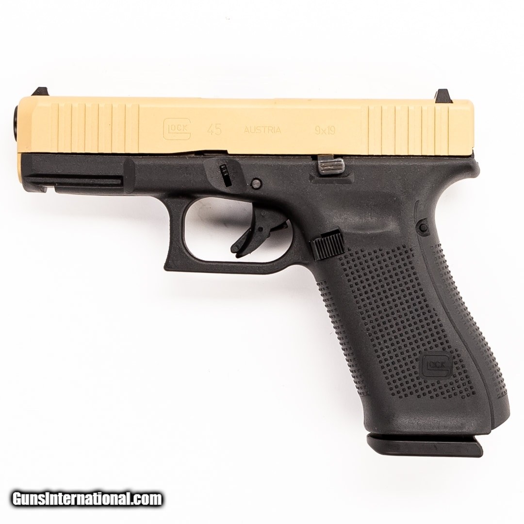 Description: Guns Listing ID: 376392 The Glock 45 is a redesigned 9mm Glock that has the full-size frame of the Glock 17 with the compact slide of the Glock 19. It is referred to as the Compact Crossover and is an excellent option for shooters looking to bridge the gap between the different models. This handgun comes with three 17-round magazines and the original case with the manual. The slide features a gold cerakote. SOLD Manufacturer: GLOCK Model: G45 Caliber Info: 9MM LUGER (9X19 PARA) Condition: Used - Certified Barrels: 4 BARREL Finish: GOLD |