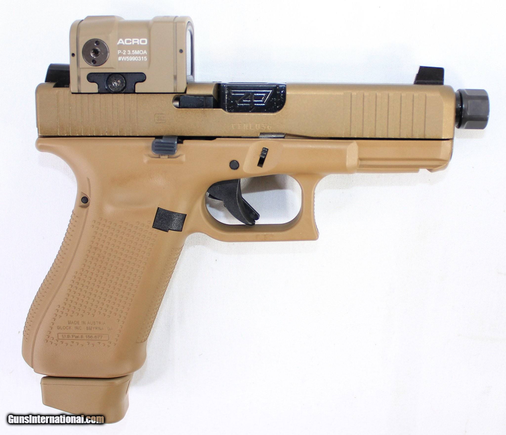 GLOCK GLOCK G45 GEN5 MOS 9MM 5" THREADED BBL FDE AIMPOINT ACRO P-2 TAN BOX 3-MAGS 9MM LUGER (9x19 PARA)