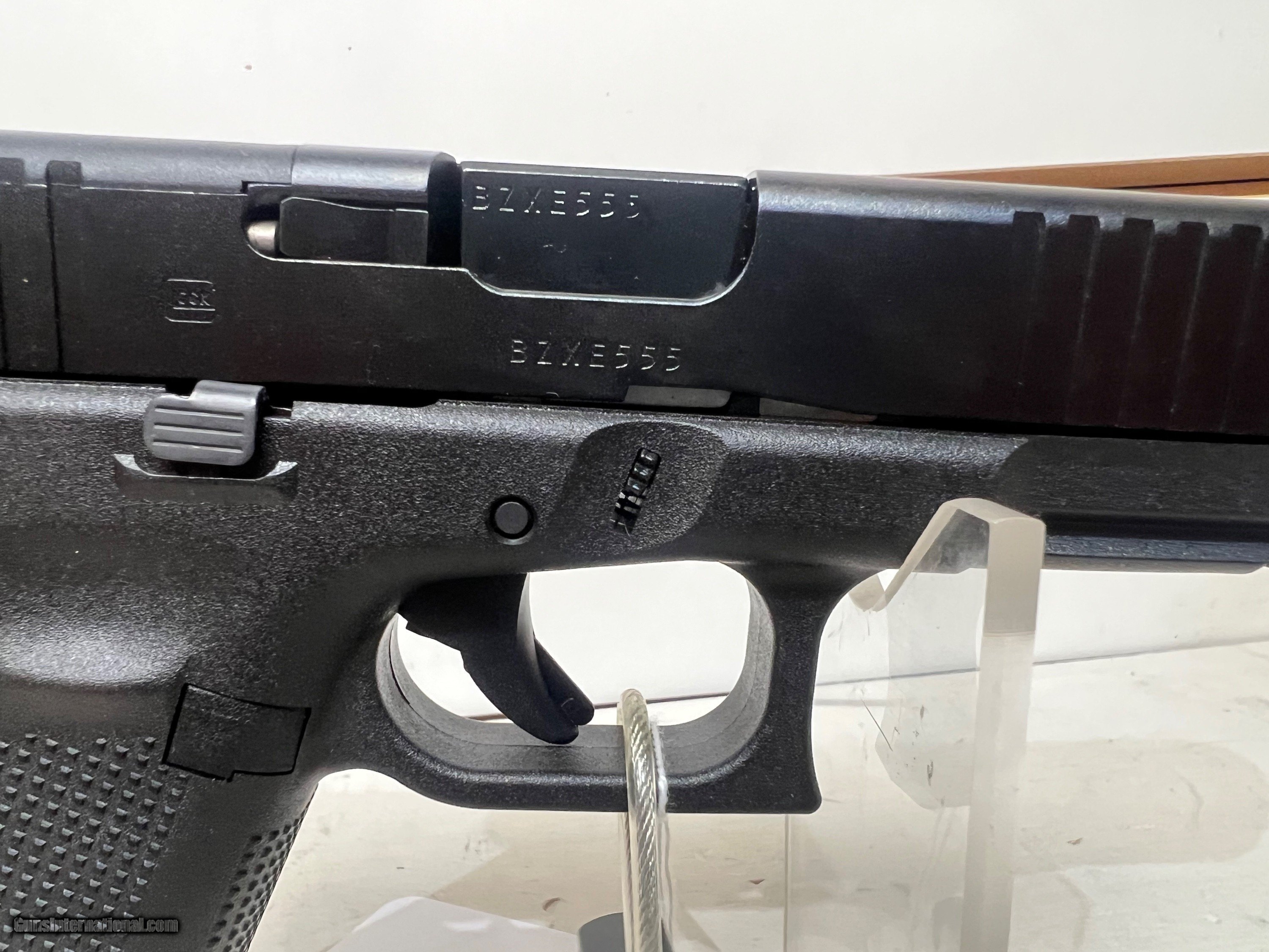 Description: new GLK 45 9MM PST 17RD FSS FS MOS new in hard plastic case (CALIBER:9MM); (MAG CAPACITY:LUGER); (GUN TYPE:PISTOL: SEMI-AUTO); (MODEL SERIES:45); (ACTION:SAFE ACTION); (CAPACITY:17+1); (FINISH:MATTE BLACK NDLC); (SIGHTS:FT: WHITE DOT RR: WHITE OUTLINE); (BARREL LENGTH:4.02); (OVERALL LENGTH:7.44); (FEATURES:AMBI SLIDE STOP LEVERS/ FLARED MAGWELL); (DEPT:HANDGUN) SOLD Serial Number: BZXE555 |