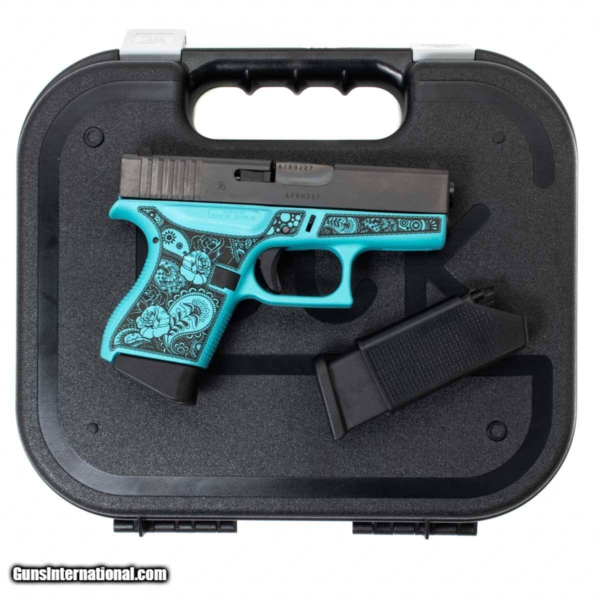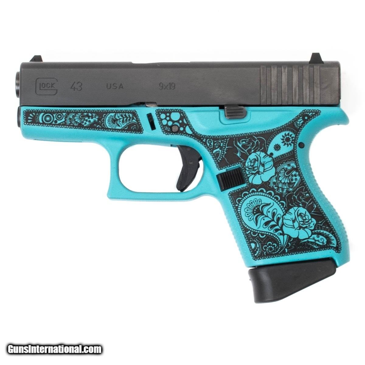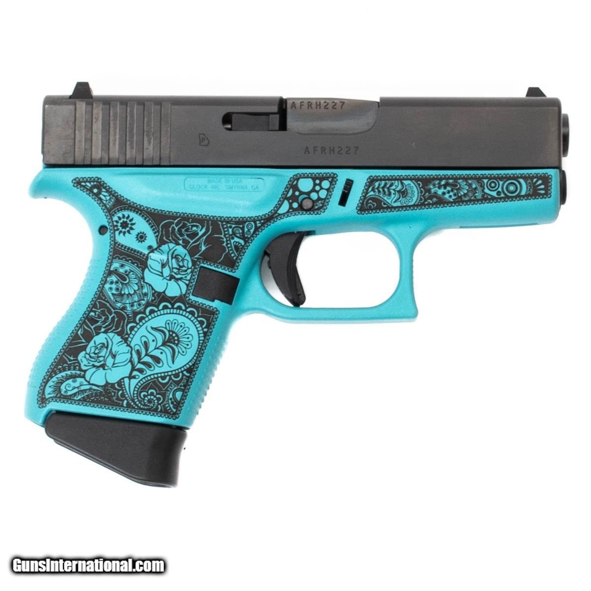 Description: Guns Listing ID: 589982 This Glock G43 is Tiffany Blue with a laser-engraved paisley and rose design. The original case and two 6-round magazines are included. Get the best bang for your buck when you get a Certified Used Firearm . When you see the Certified Used stamp on any of our firearms, you can be confident that you‚re getting exactly what you want – a gun only in very good to excellent condition and held to the highest quality standard. All Certified Used Guns come with a ‚no questions asked‚ return policy . Manufacturer: GLOCK Model: 43 Caliber Info: 9MM LUGER (9X19 PARA) Condition: Used - Certified Barrels: 3.40" BARREL Action: SEMI AUTOMATIC Finish: TIFFANY BLUE Weight: 1 Price: $479.99 Contact Seller |