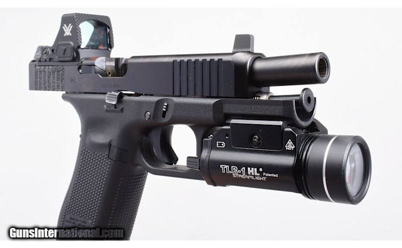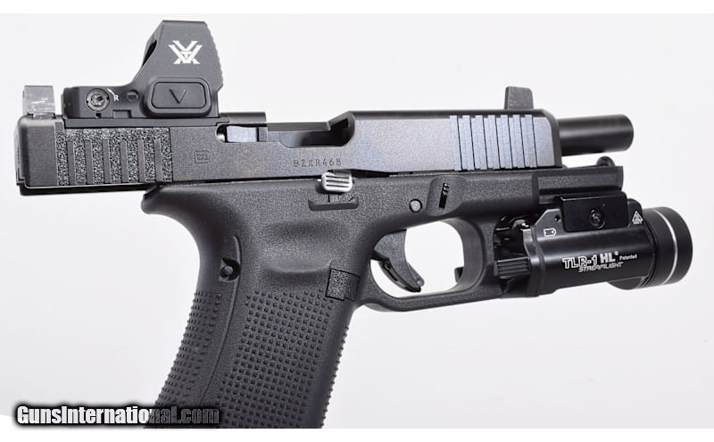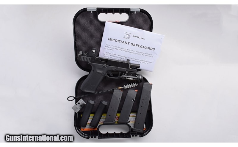 Description: High Condition Glock 47 Gen 5 in 9mm Luger. Features a Vortex Defender ST Red Dot and Streamlight TLR-1 HL Light. Feature optic height Ameriglo black sights. Includes; factory box, manual, cable lock, 3 interchangeable backstraps, 2 17RD magazines, 1 27RD magazine, and 2 optic floor plates. Excellent bore and appears to be mechanically sound. 9mm Luger SOLD Metal Condition: nDLC Wood Condition: Polymer Bore Condition: Sharp Barrels: 4.5 Weight: 30.6 Oz Sights: Vortex Defender ST Red Dot / Optic Height Black Front Blade / Blacked Out Rear Item Location: Buda, TX |