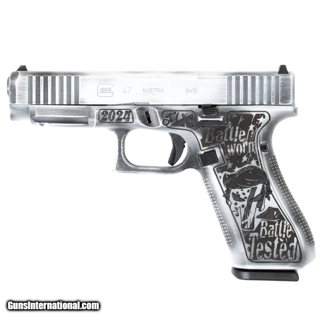 Description: Guns Listing ID: 574884 This optics ready Glock comes with three 17-round magazines, the original case, owner‚s manual, extra backstraps, a loader, the slide & frame are Distressed Battleship Gray with 2024 Trump designs, and \"Make America Great Again\" on the frame. Get the best bang for your buck when you get a Certified Used Firearm . When you see the Certified Used stamp on any of our firearms, you can be confident that you‚re getting exactly what you want – a gun only in very good to excellent condition and held to the highest quality standard. All Certified Used Guns come with a ‚no questions asked‚ return policy . Manufacturer: GLOCK Model: 47 MOS Caliber Info: 9MM LUGER (9X19 PARA) Condition: Used - Certified Barrels: 4.50" BARREL Action: SEMI AUTOMATIC Finish: DISTRESSED GRAY Weight: 1.4 Price: $629.99 Contact Seller |