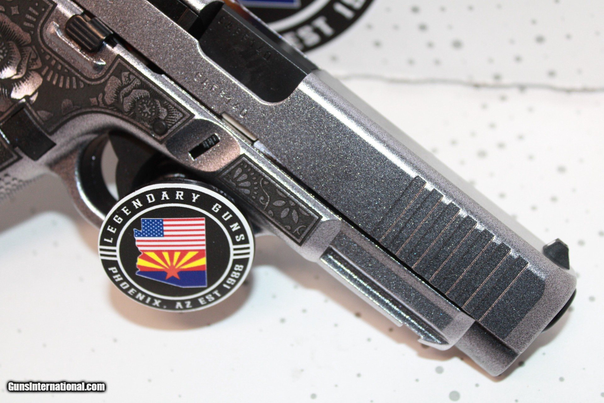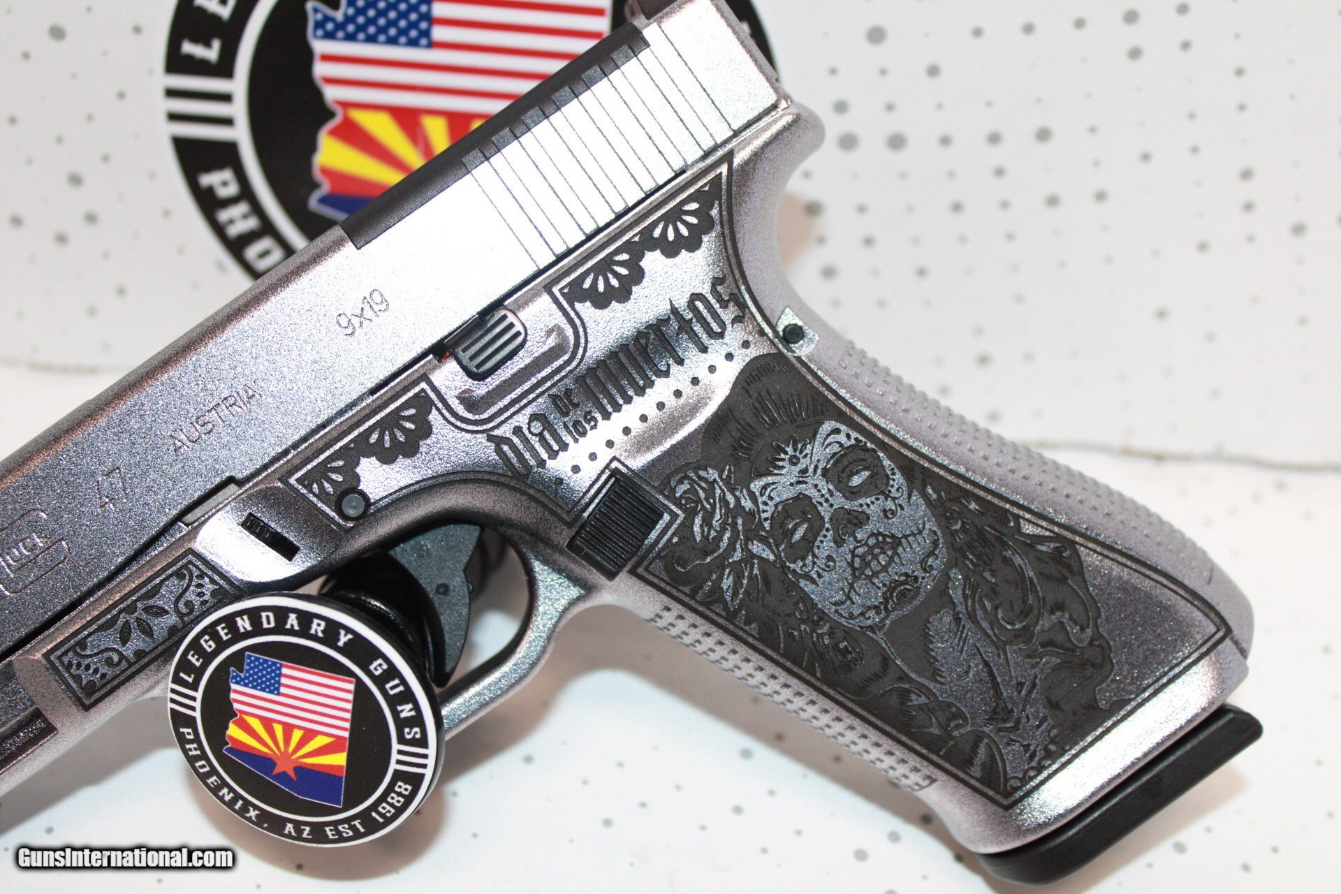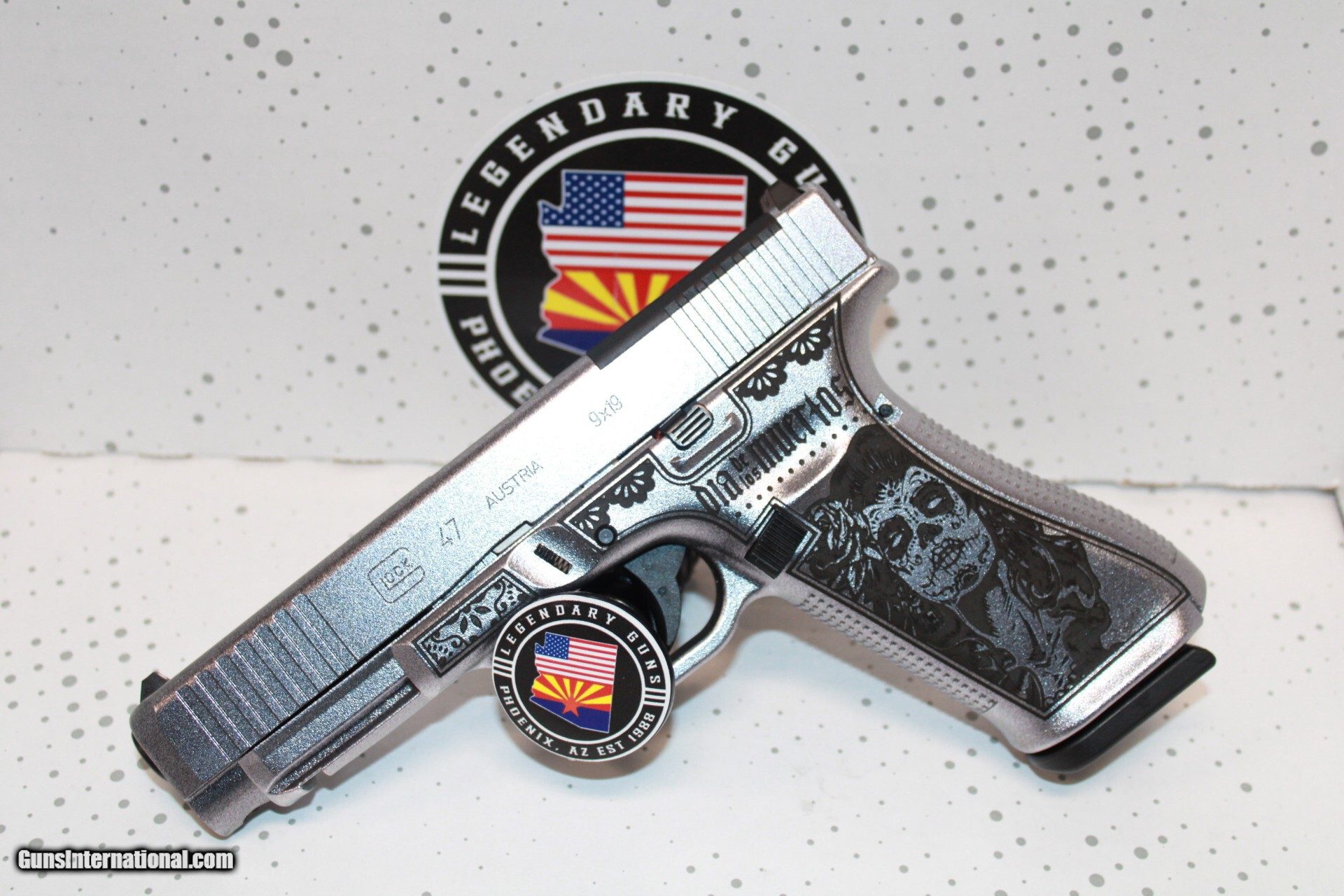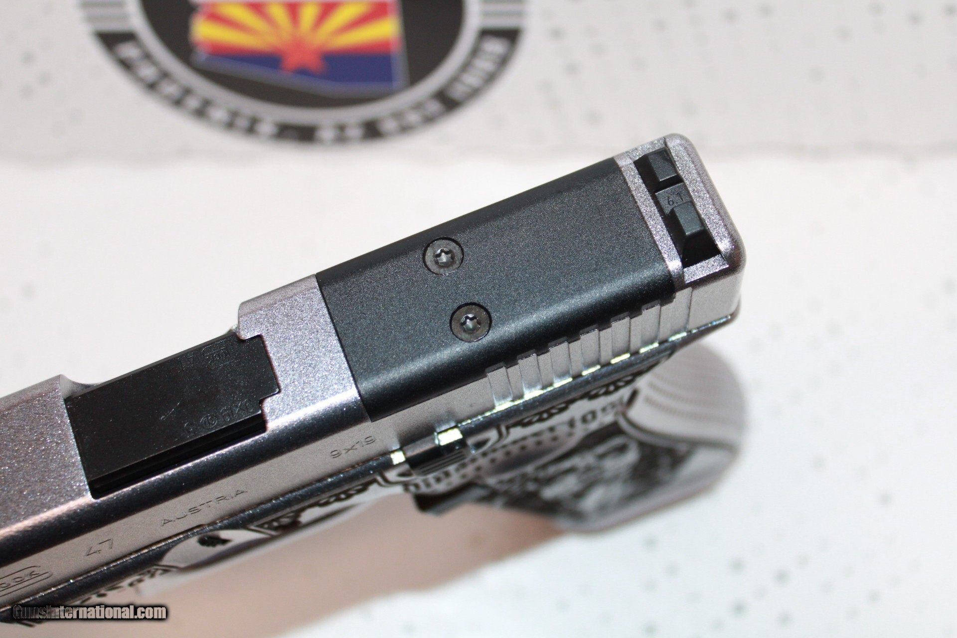 Description: Glock 47 MOS in 9MM customized by Shark Coast with a Silver finish and Day of the Dead stipiling. Gun is brand new with box. *Legendary Guns in Phoenix AZ 602-242-1195 Hours of operation Tuesday-Friday 10-6 Sat 10-5 Closed Sundays & Mondays *We accept all Major credit cards. We DO NOT charge an additional fee for Credit Cards. We also accept Postal Money orders or Certified Bank Checks{Check & Money order payments must arrive within 7 days of initial agreement and will be held for 3 days before items are shipped} *Shipping is $50 for rifles/shotguns {AK & HI Extra} and $35 for handguns. Arizona Residents Must Pay Sales Tax. We DO NOT ship Internationally. *We offer a 60 day layaway on purchases of $500 or more. Items require 1/3 of the total price as down payment which is NON-REFUNDABLE and you have 60 days to pay off the balance. *Please call or email with any questions and to confirm availability before buying. We are happy to answer all questions. All items listed are also for sale at our Phoenix, AZ location *We offer a 3 day inspection period on USED FIREARMS ONLY, We accept returns within the 3 day inspection period with NO REFUNDS ON SHIPPING CHARGES and a 10% restocking fee. *Trades are welcome for customers who can visit our Phoenix, AZ location, We DO NOT engage in online or mail in trades. Handgun Caliber: 9x19mm Parabellum (9mm Luger, 9x19mm NATO) Manufacturer: Glock Condition: New Price: $849.00 Shipping: $35.00 Contact Seller |